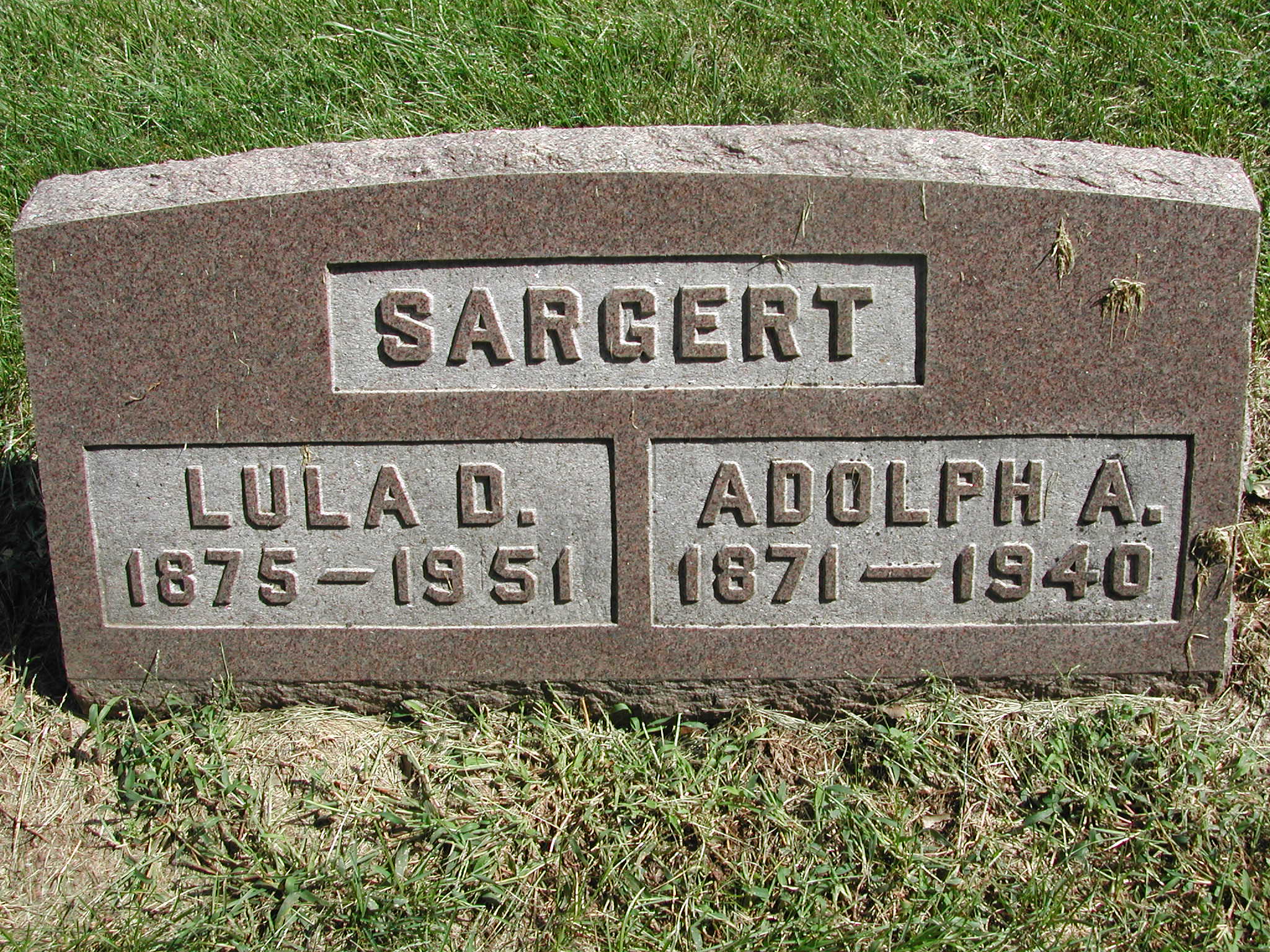 Sargert, Adolph A; b. 1871; d. 1940; s/w Lula D Sargert; - Veteran status N/A; Section 1; Row 02; Photo