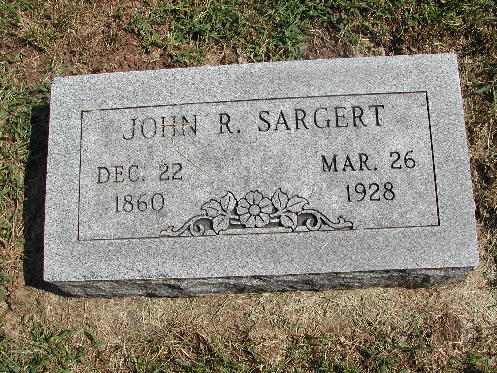 Sargert, John R; b. 22 Dec 1869; d. 26 Mar 1928; - Veteran status N/A; Section 1; Row 02; Photo