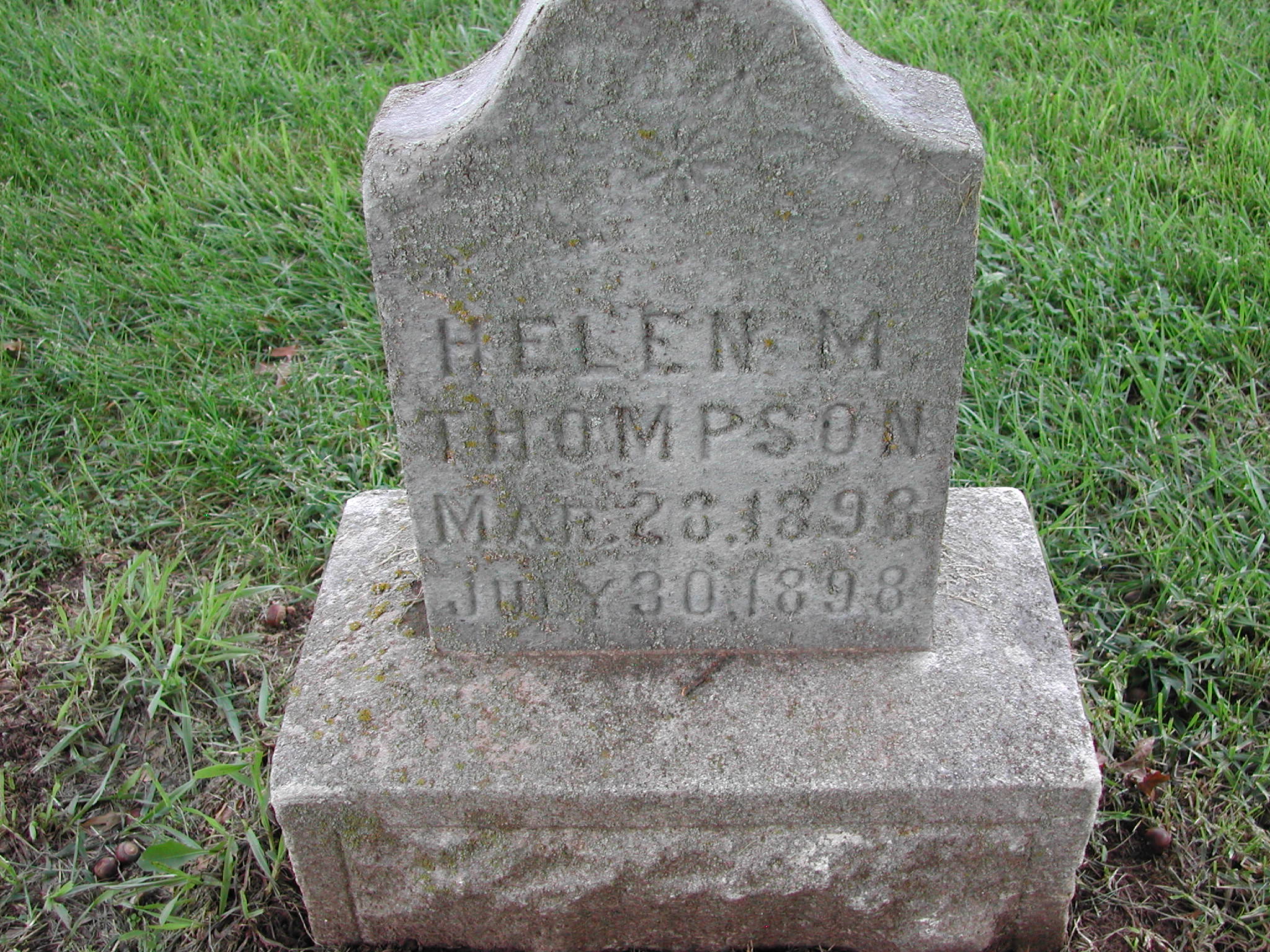 Thompson, Helen M; b. 28 Mar 1898; d. 30 Jul 1898; - Veteran status N/A; Section 1; Row 02; Photo