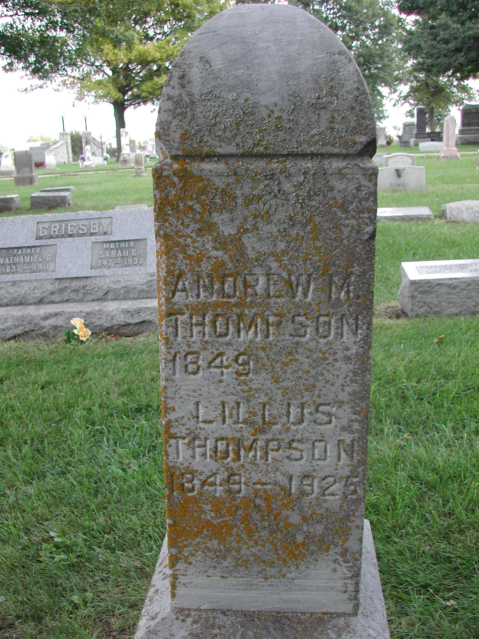 Thompson, Andrew M; b. 1849; s/w Lillus Thompson; - Veteran status N/A; Section 1; Row 02; Photo