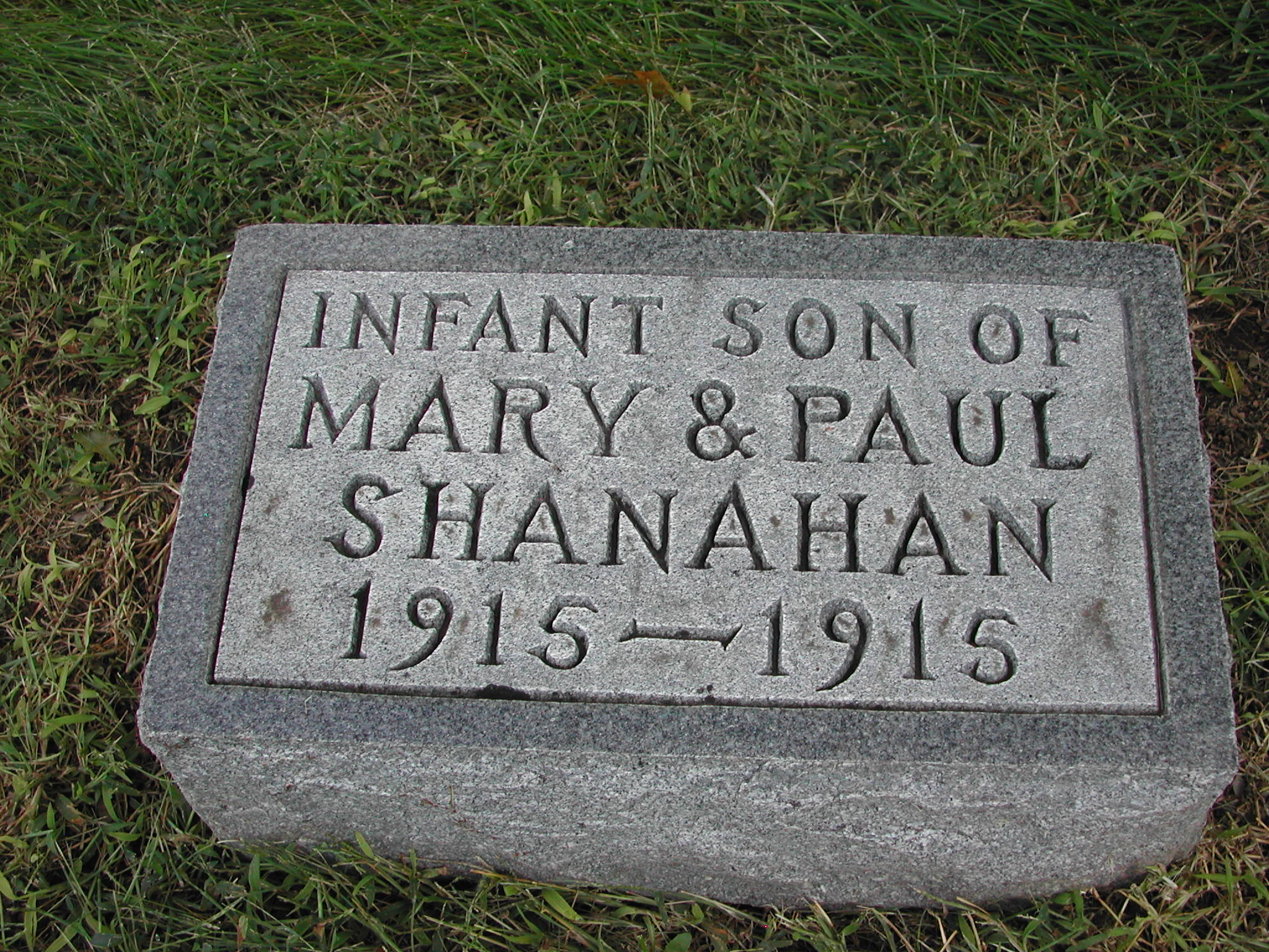 Shanahan, Infant; b. 1915; d. 1915; Son of Mary and Paul Shanahan; - Veteran status N/A; Section 1; Row 02; Photo