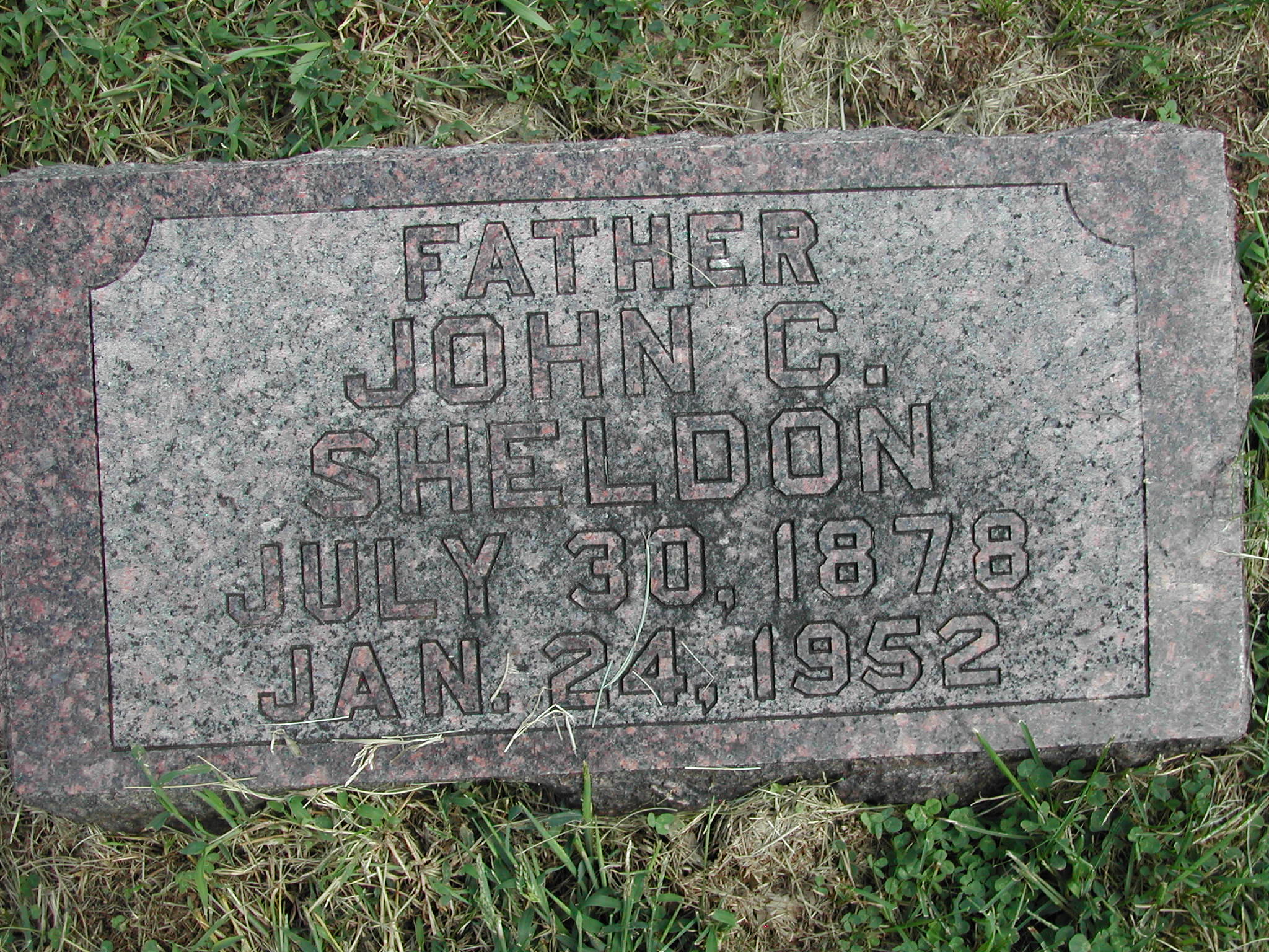 Sheldon, John C; b. 30 Jul 1878; d. 24 Jan 1952; Father; - Veteran status N/A; Section 1; Row 03; Photo