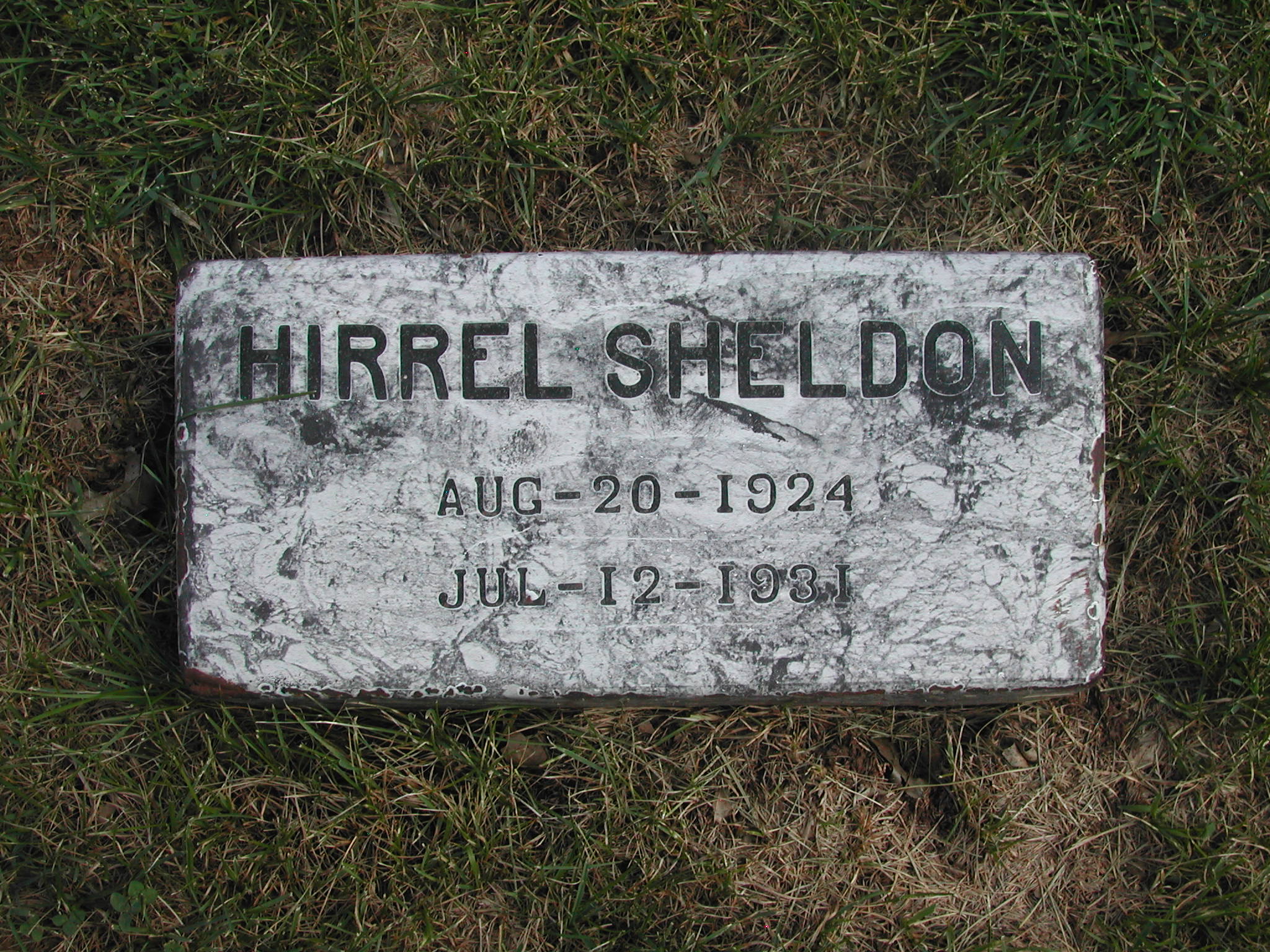 Sheldon, Hirrel; b. 20 Apr 1924; d. 12 Jul 1931; - Veteran status N/A; Section 1; Row 03; Photo