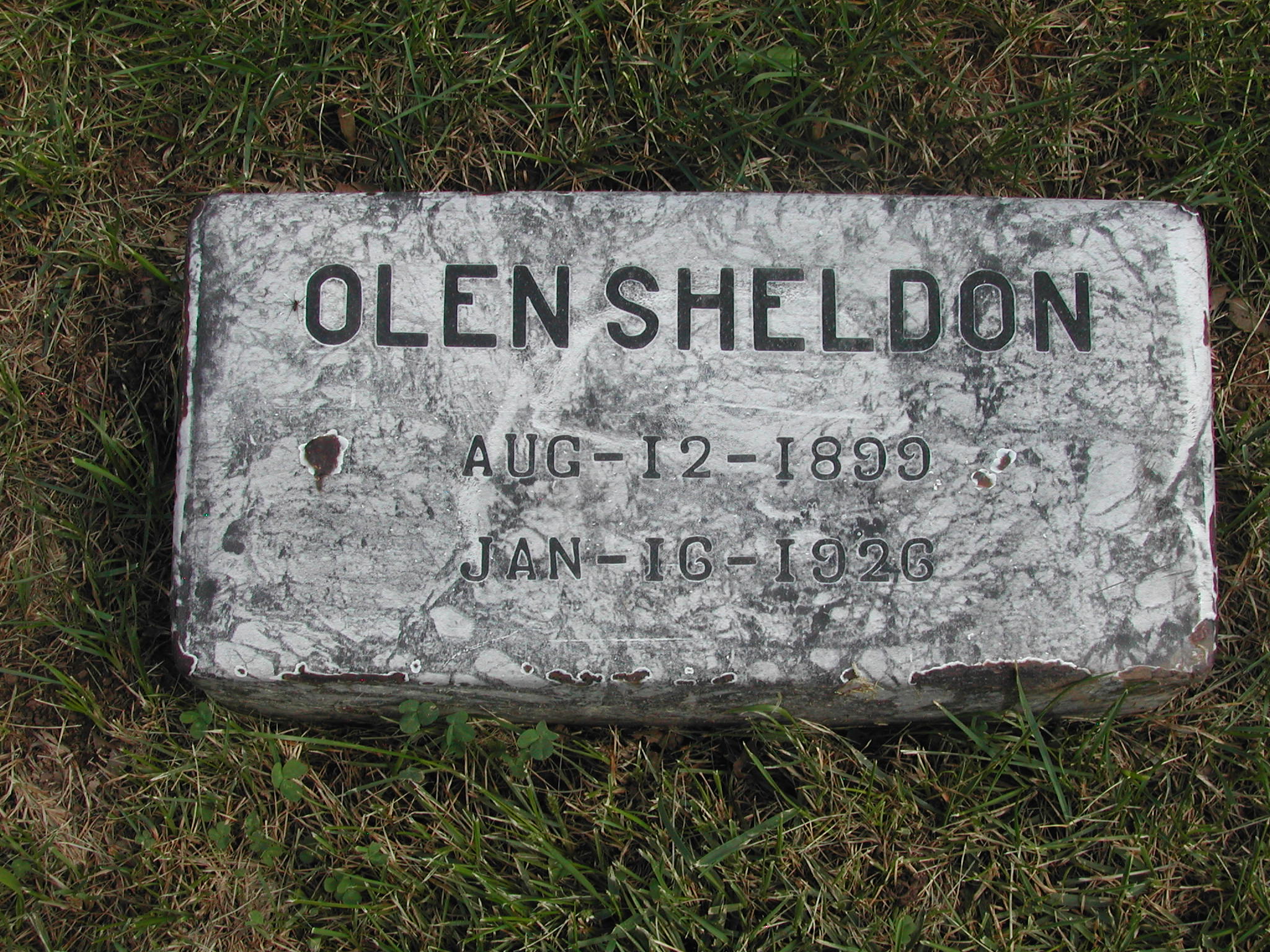 Sheldon, Olen; b. 12 Aug 1899; d. 16 Jan 1926; - Veteran status N/A; Section 1; Row 03; Photo