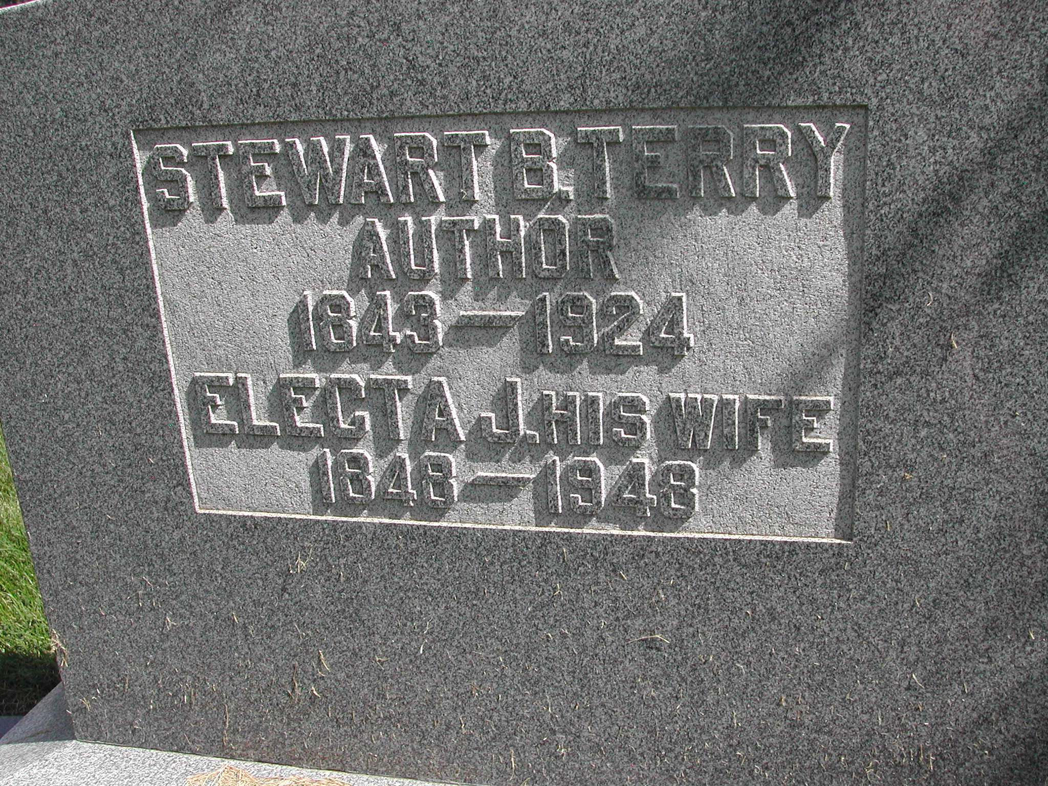 Terry, Stewart B; b. 1843; d. 1924; Author, Footstone Father; s/w Electa J Terry; - Veteran status N/A; Section 1; Row 04; Photo Photo