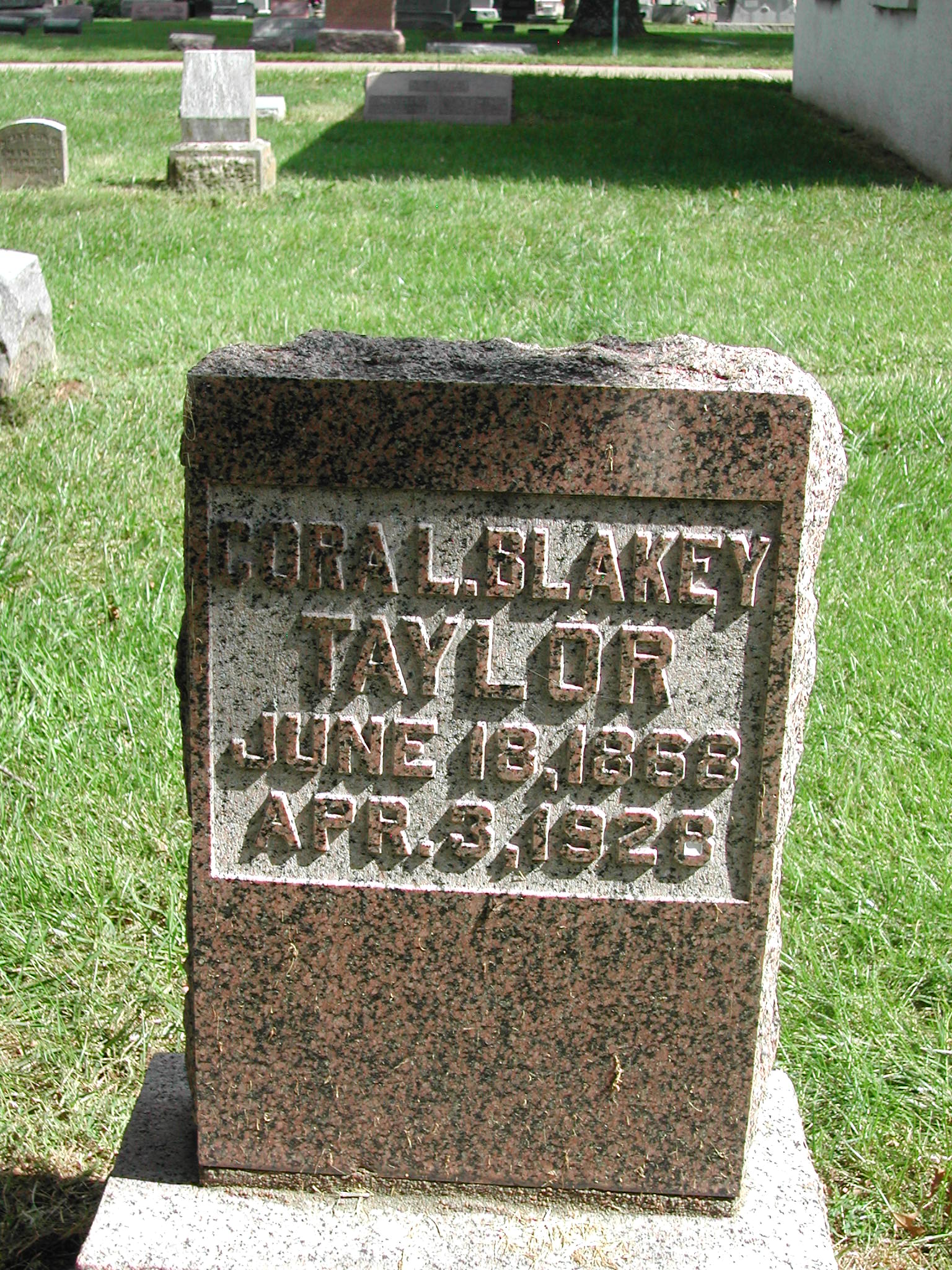 Taylor, Cora L Blakey; b. 18 Jun 1888; d. 03 Apr 1928; - Veteran status N/A; Section 1; Row 04; Photo