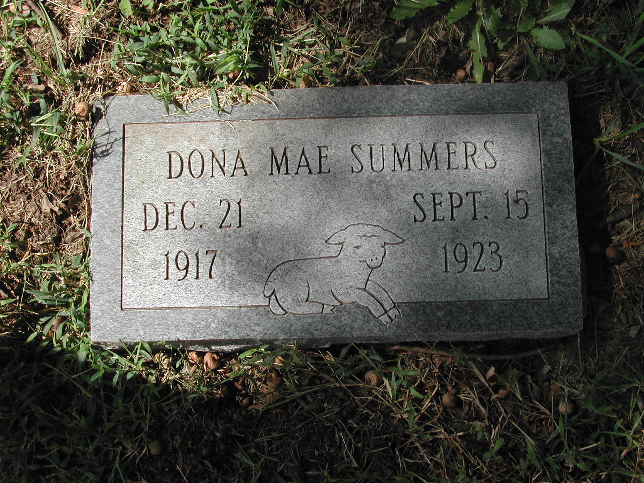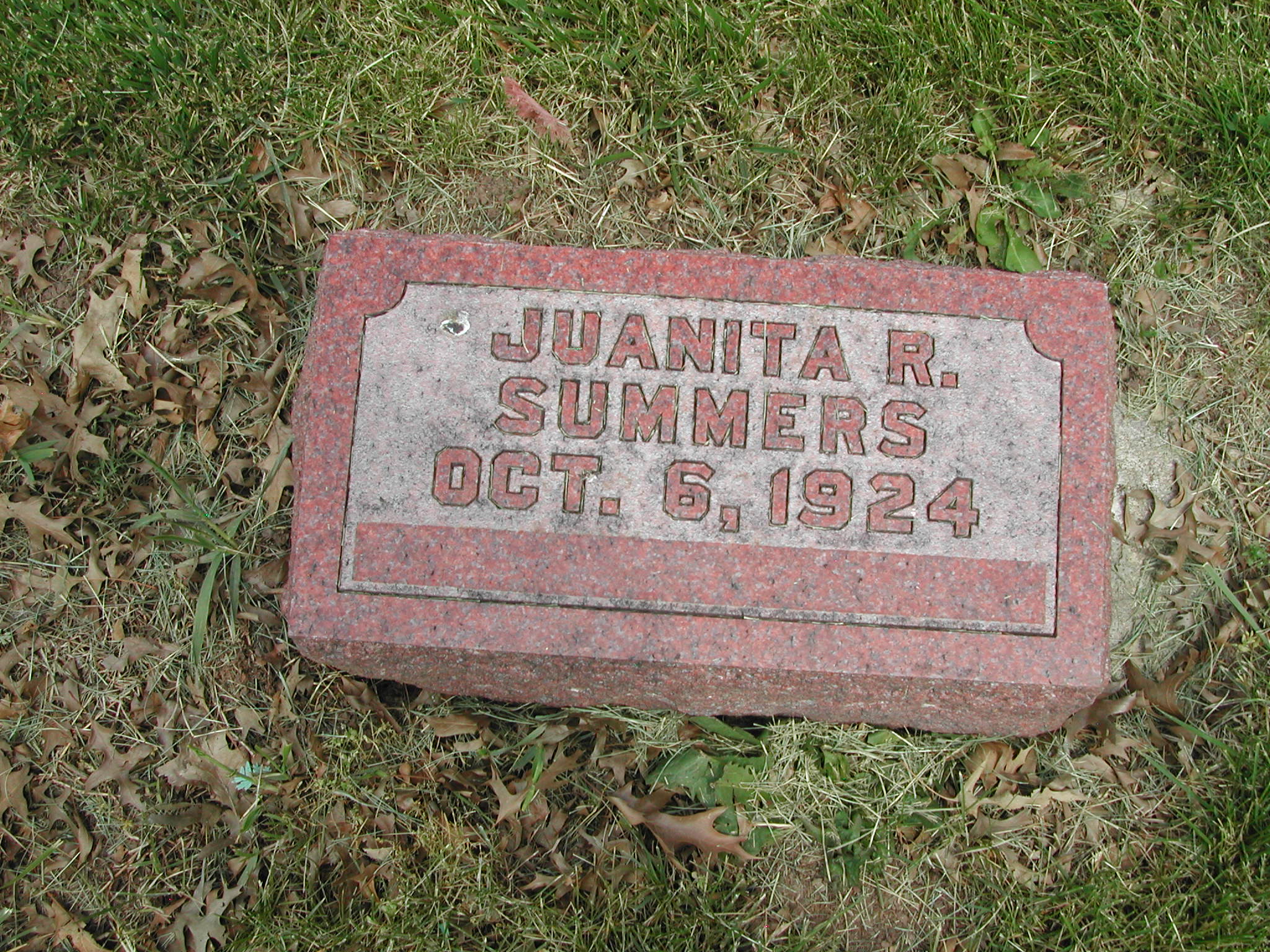 Summers, Juanita R; d. 06 Oct 1924; Footstone Summers; - Veteran status N/A; Section 4; Row 06; Photo