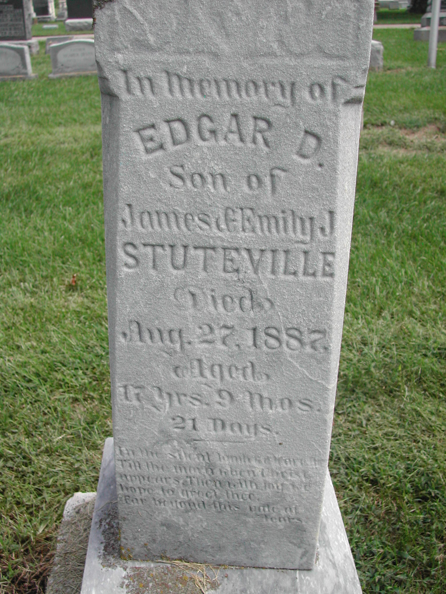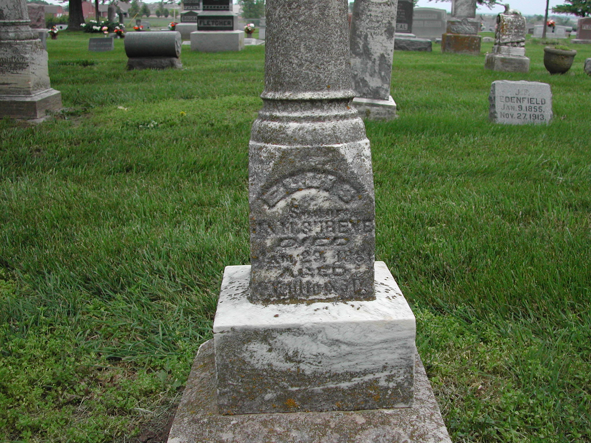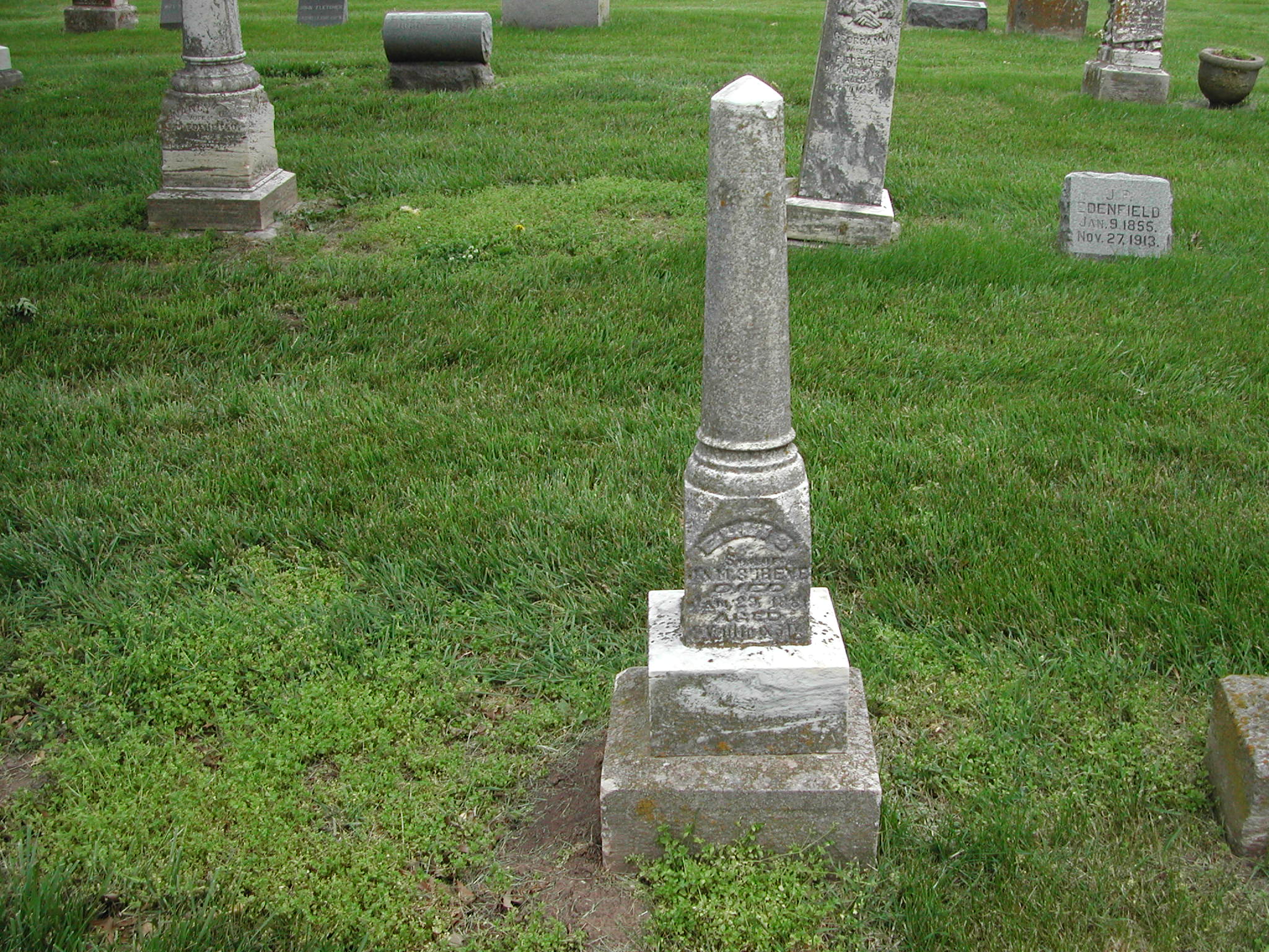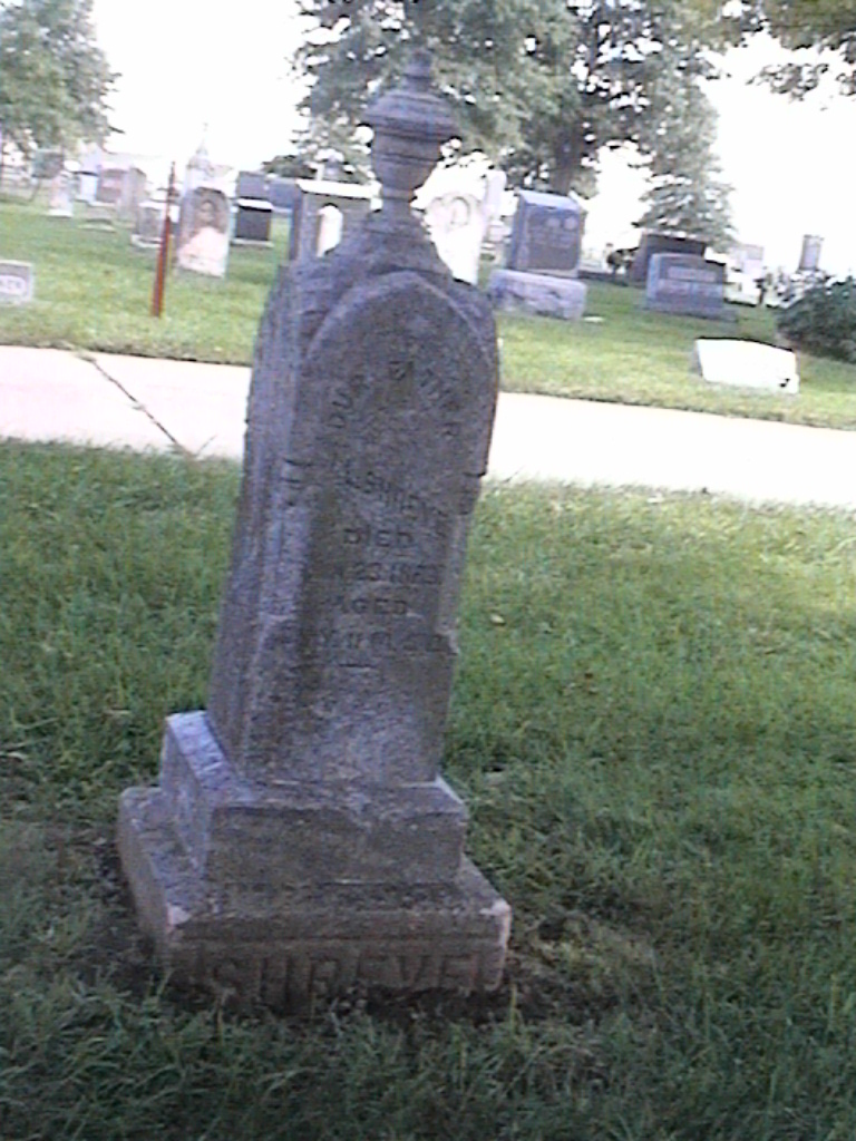 Shreve, Ellis; d. 29 Jan 1881; a. 2 Yrs, 11 Mos, 3 Dys; Son of J and M Shreve; - Veteran status N/A; Section 2; Row 01; Photo