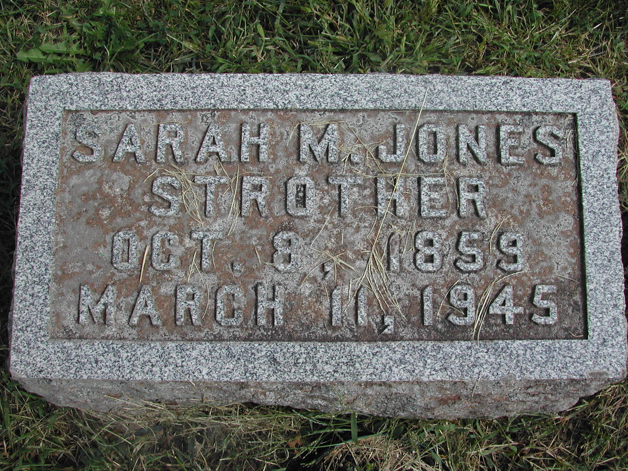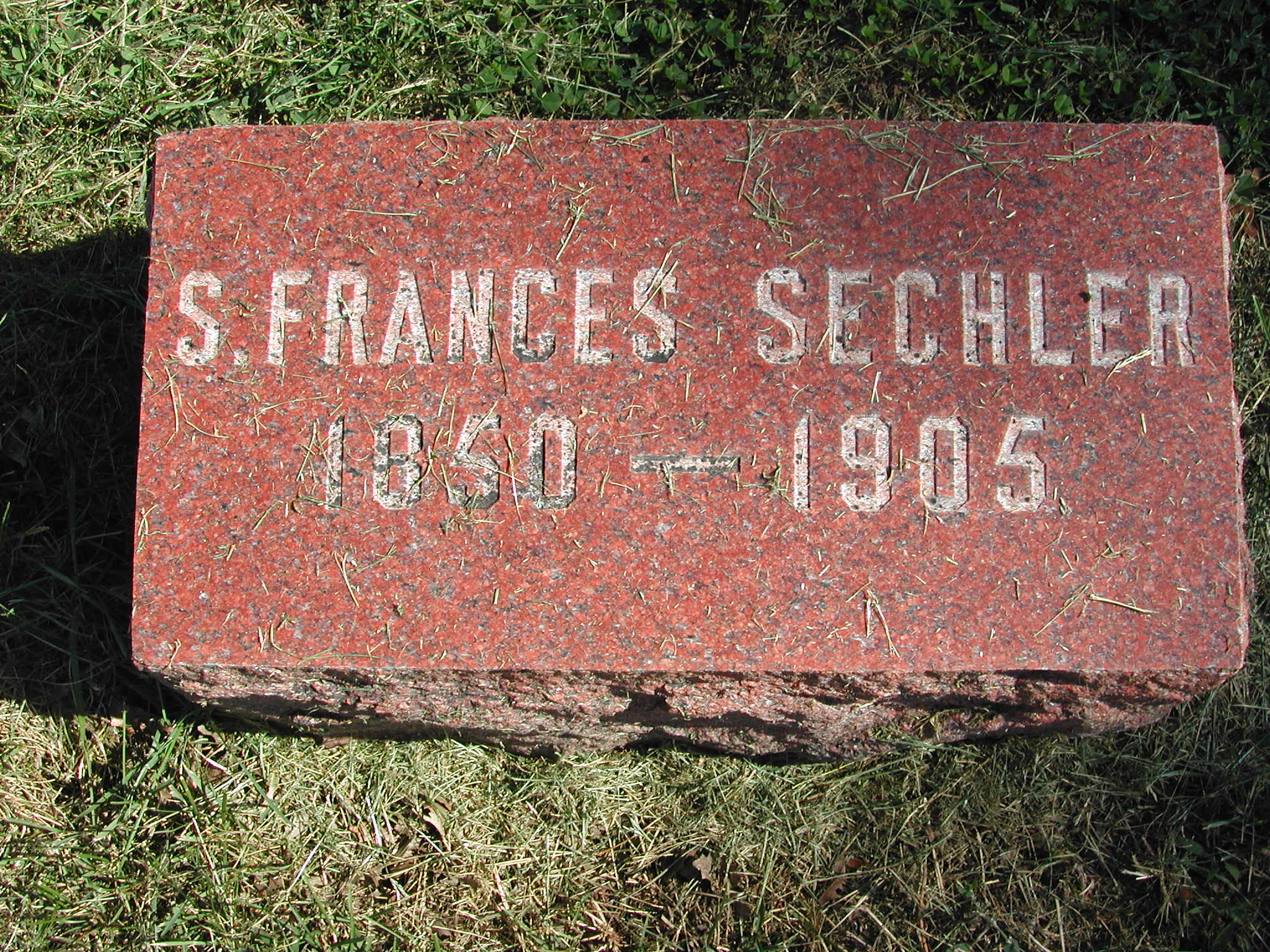Sechler, S Frances; b. 1850; d. 1905; Footstone; - Veteran status N/A; Section 3; Row 02; Photo