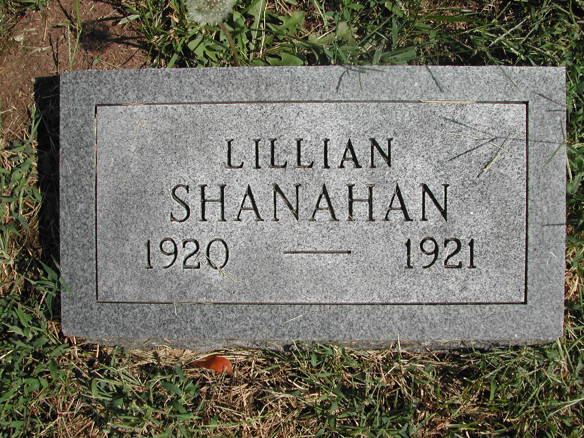 Shanahan, Lillian; b. 1920; d. 1921; - Veteran status N/A; Section 1; Row 05; Photo