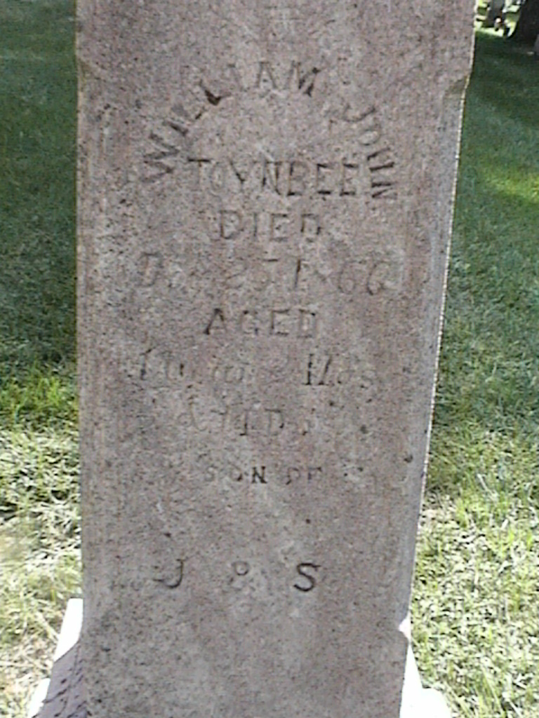Toynbee, William John; d. 25 Dec 1866; a. 11 Yrs, 2 Mos, 14 Dys; Son of J and S Toynbee; - Veteran status N/A; Section 1; Row 07; Photo