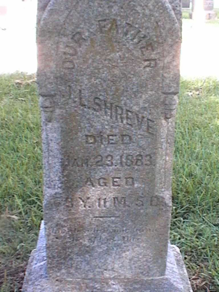 Shreve, Elvis; d. 29 Jan 1881; a. 3 Yrs, 10 Mos, 3 Dys; Son of J and M Shreve; - Veteran status N/A; Section 2; Row 01; Photo