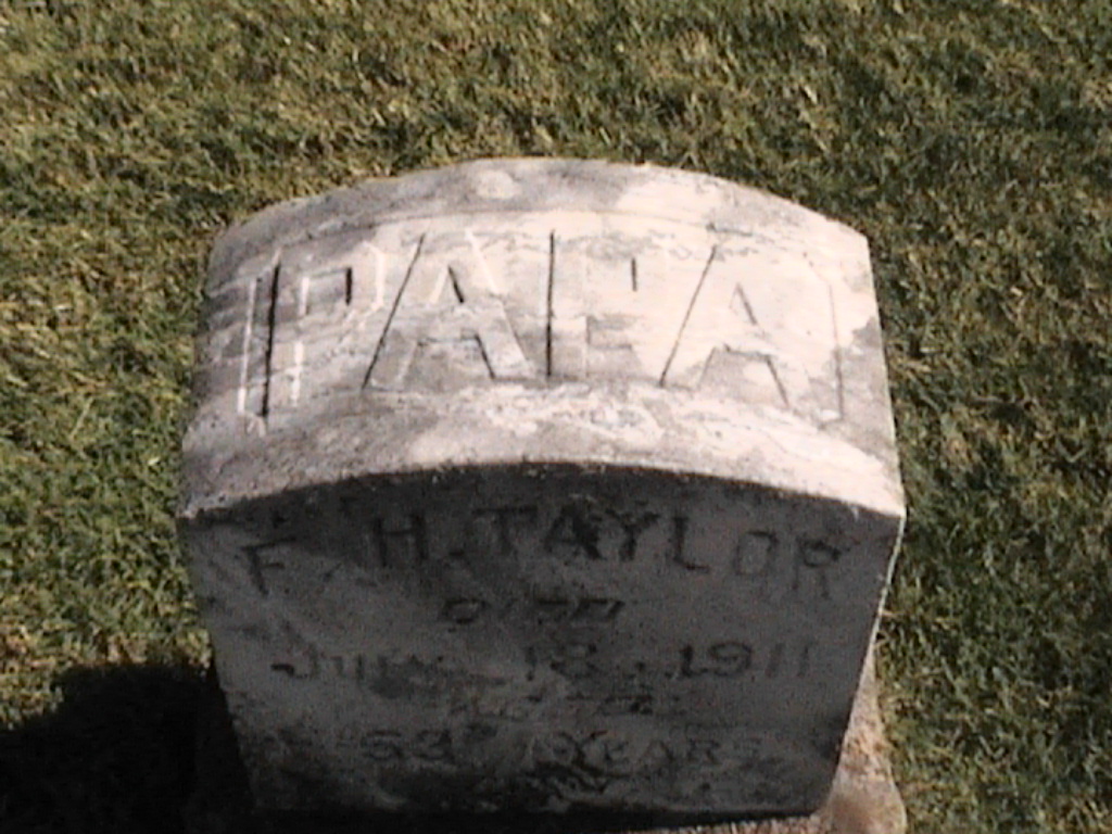 Taylor, F H; d. 18 Jul 1911; a. 53 Yrs; Papa; - Veteran status N/A; Section 2; Row 01; Photo Photo