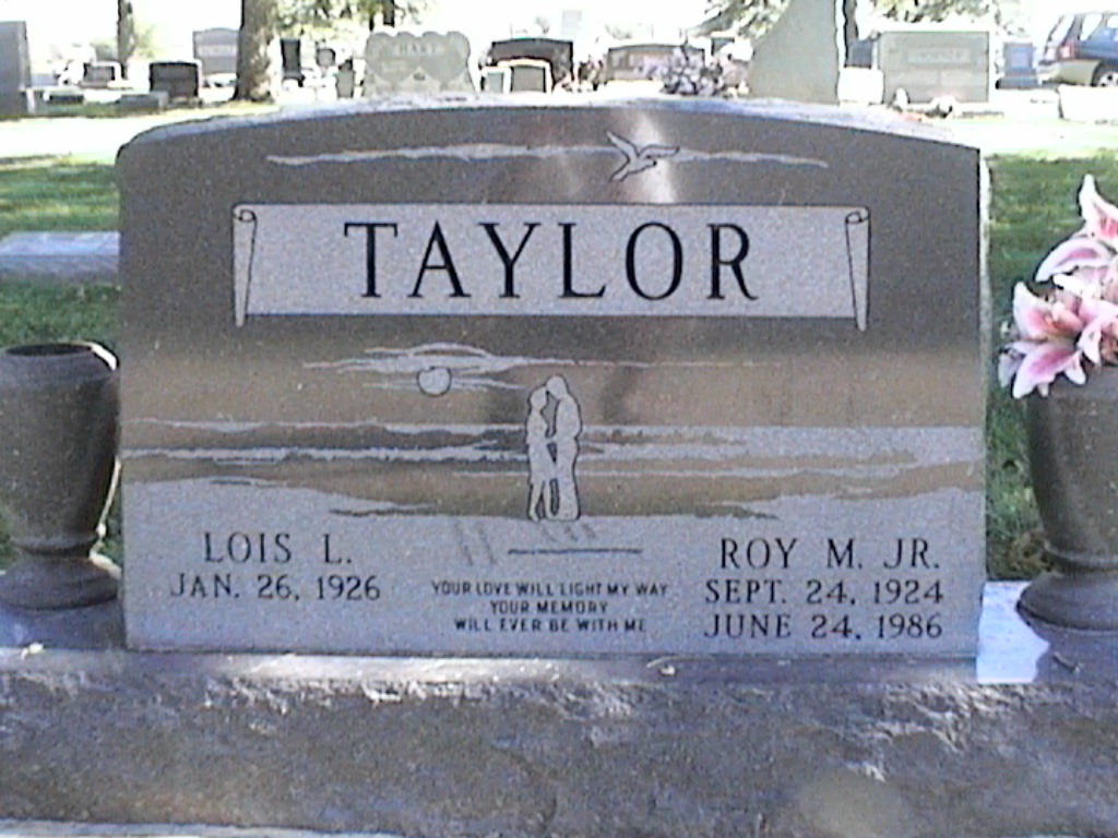 Taylor, Roy M Jr; b. 24 Sep 1924; d. 24 Jun 1986; s/w Lois L Taylor; - Veteran status N/A; Section 2; Row 01; Photo