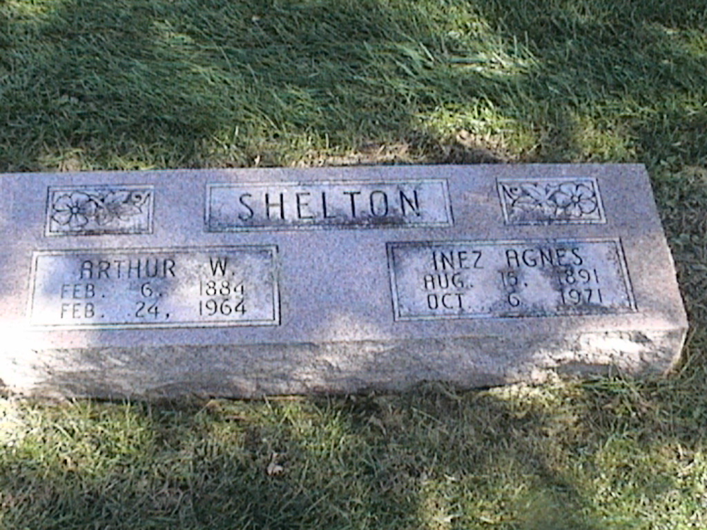Shelton, Arthur W; b. 06 Feb 1884; d. 24 Feb 1964; s/w Inez Agnes Shelton; - Veteran status N/A; Section 2; Row 05; Photo