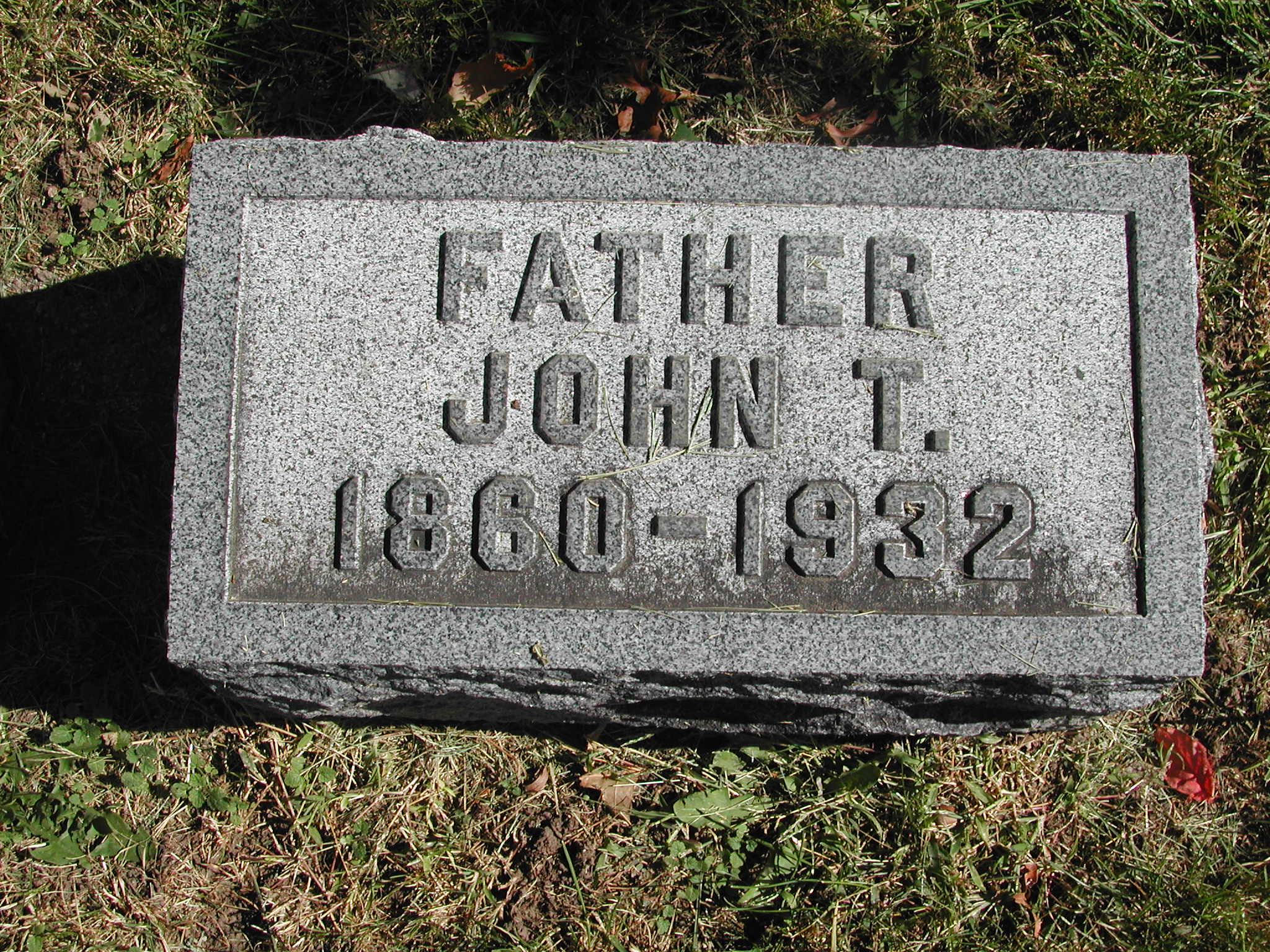 Schultz, John T; b. 1860; d. 1932; Father; - Veteran status N/A; Section 3; Row 01; Photo Photo Photo