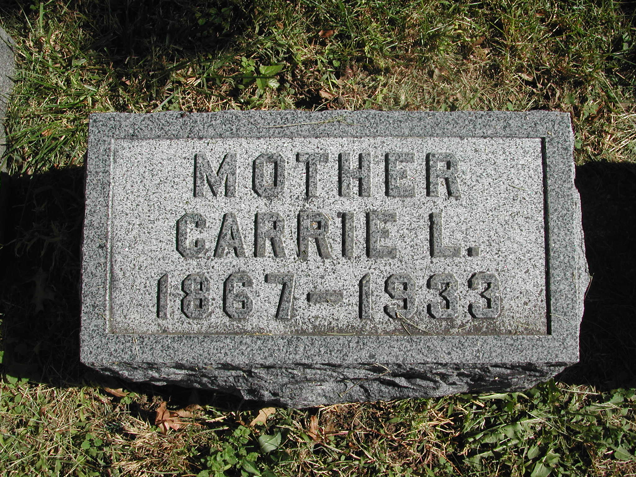 Schultz, Carrie L; b. 1867; d. 1933; Mother; - Veteran status N/A; Section 3; Row 01; Photo Photo Photo