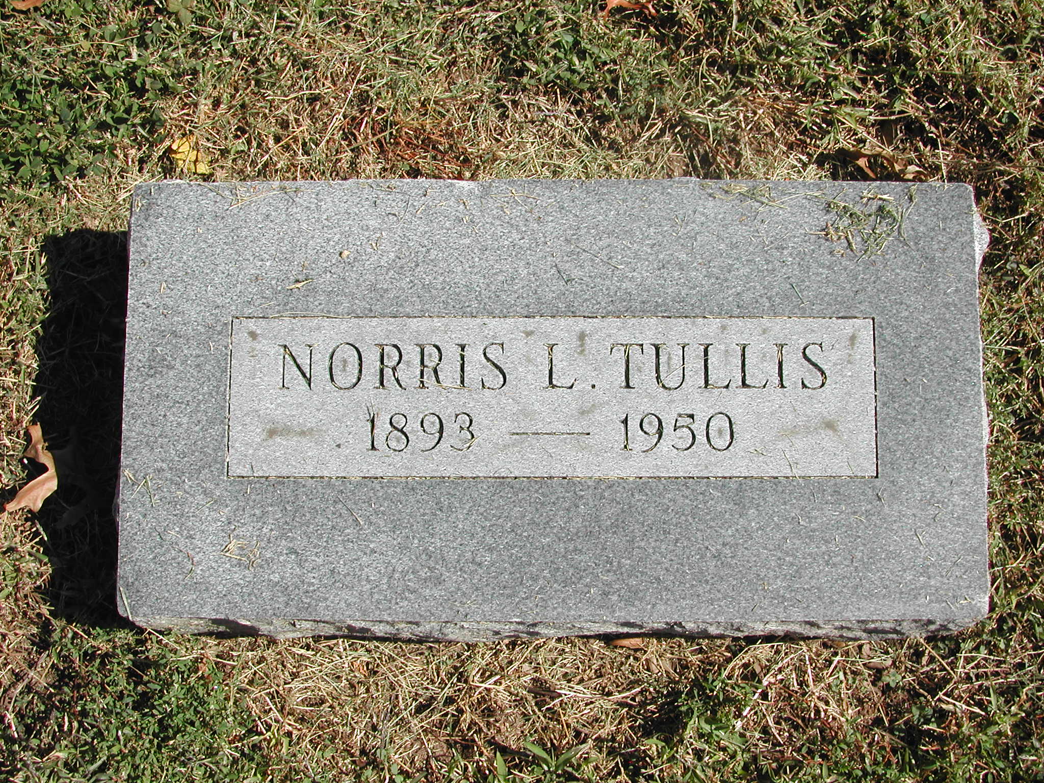 Tullis, Norris L; b. 1893; d. 1950; Footstone; - Veteran status N/A; Section 3; Row 01; Photo
