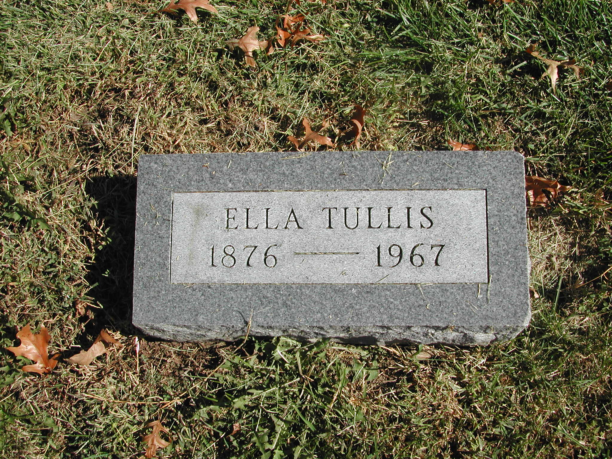 Tullis, Ella; b. 1876; d. 1967; Footstone; - Veteran status N/A; Section 3; Row 01; Photo