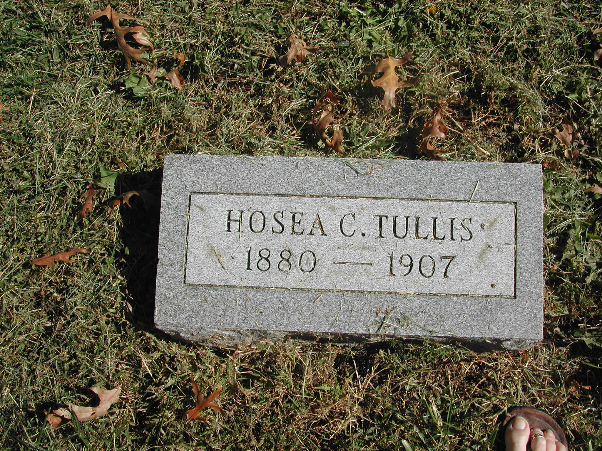 Tullis, Hosea C; b. 1880; d. 1907; Footstone; - Veteran status N/A; Section 3; Row 01; Photo