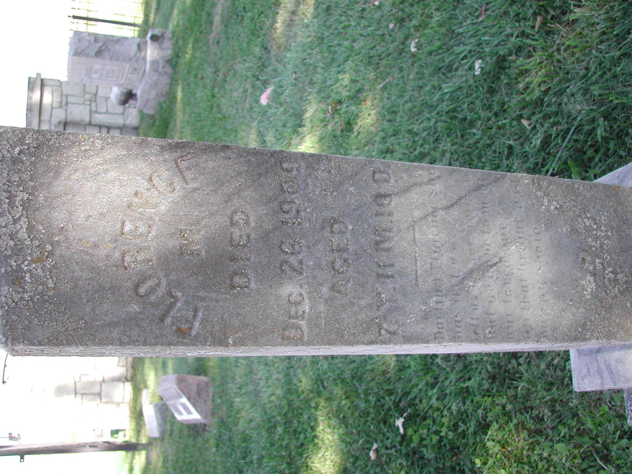 Thomas, Isaac; d. 19 Sep 1892; a. 42 Yrs; Son of L A Thomas; - Veteran status N/A; Section 2; Row 03; Photo