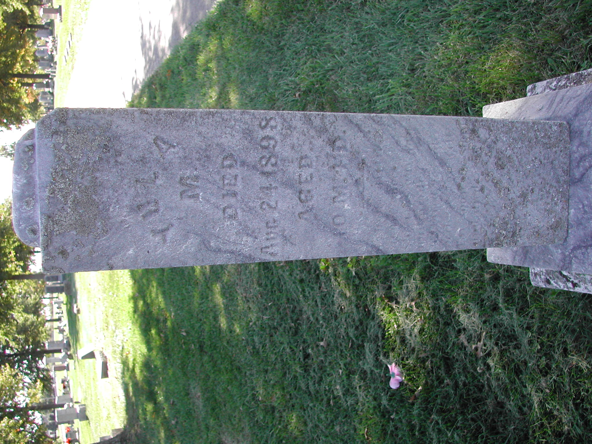 Shanahan, Oral May; b. 04 May 1896; d. 03 Dec 1896; Footstone O M S; - Veteran status N/A; Section 1; Row 02; Photo Photo