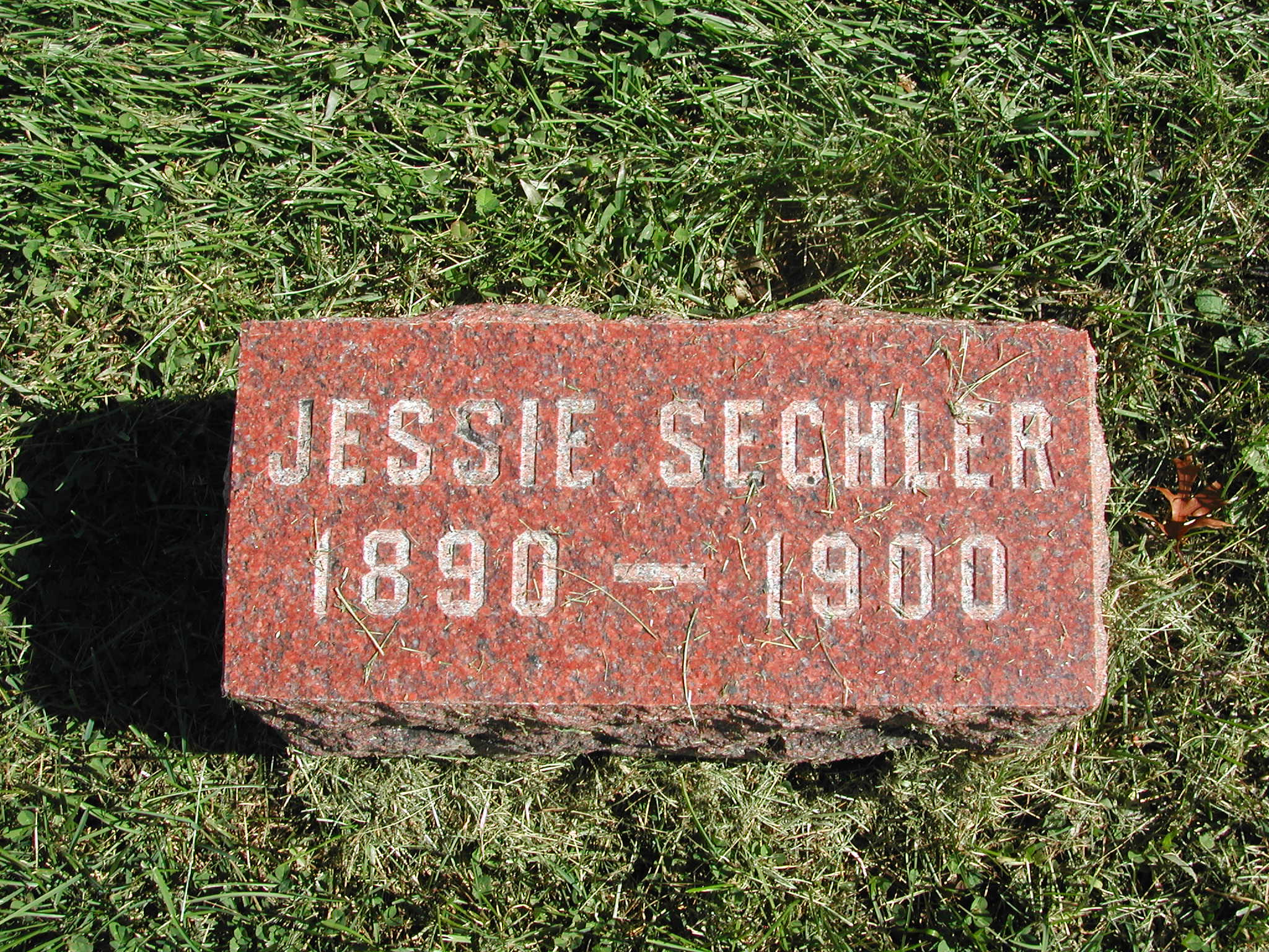 Sechler, Jessie; b. 1890; d. 1900; Footstone; - Veteran status N/A; Section 3; Row 02; Photo