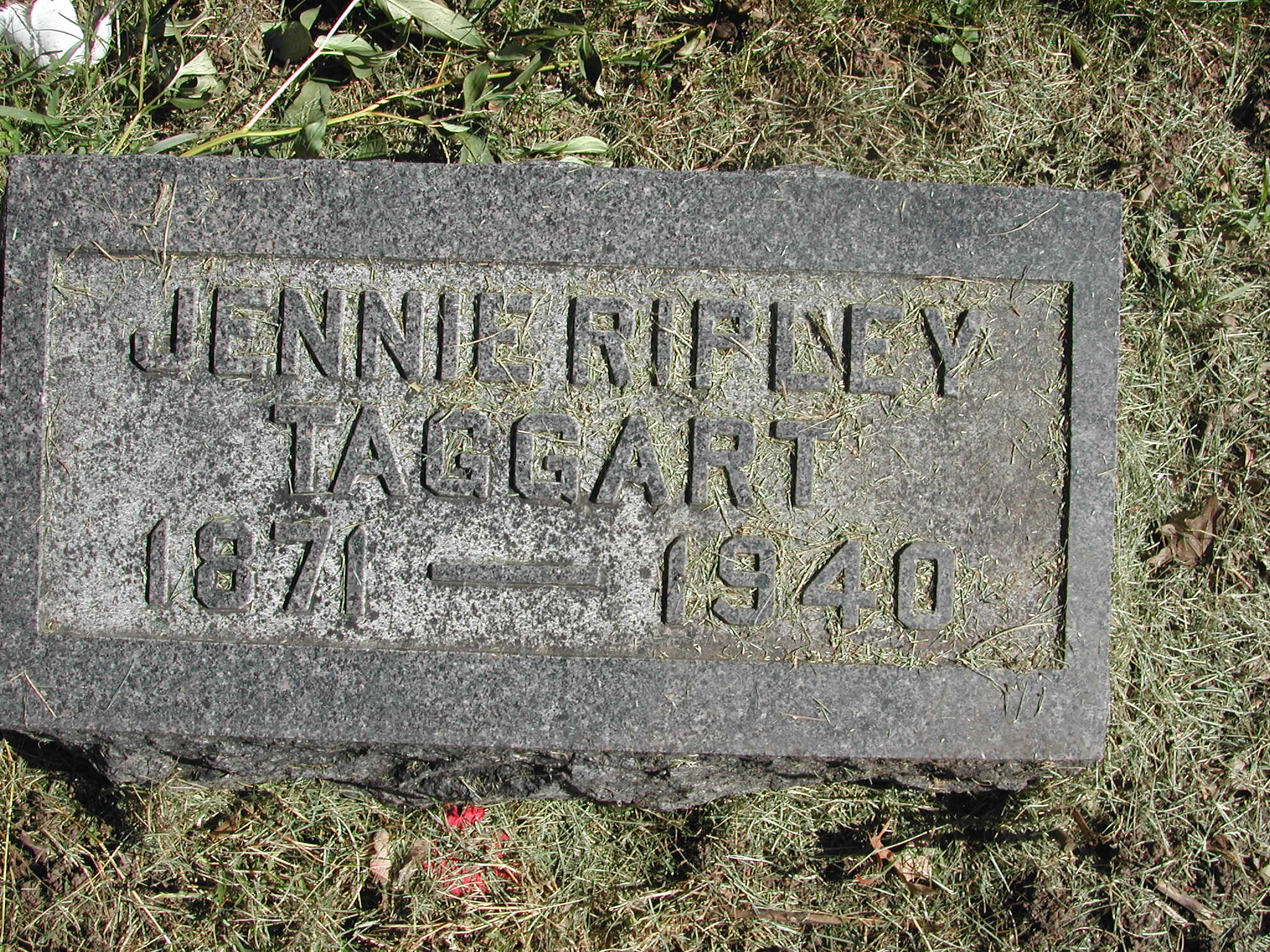 Taggart, Jennie Ripley; b. 1871; d. 1940; Footstone; - Veteran status N/A; Section 3; Row 03; Photo