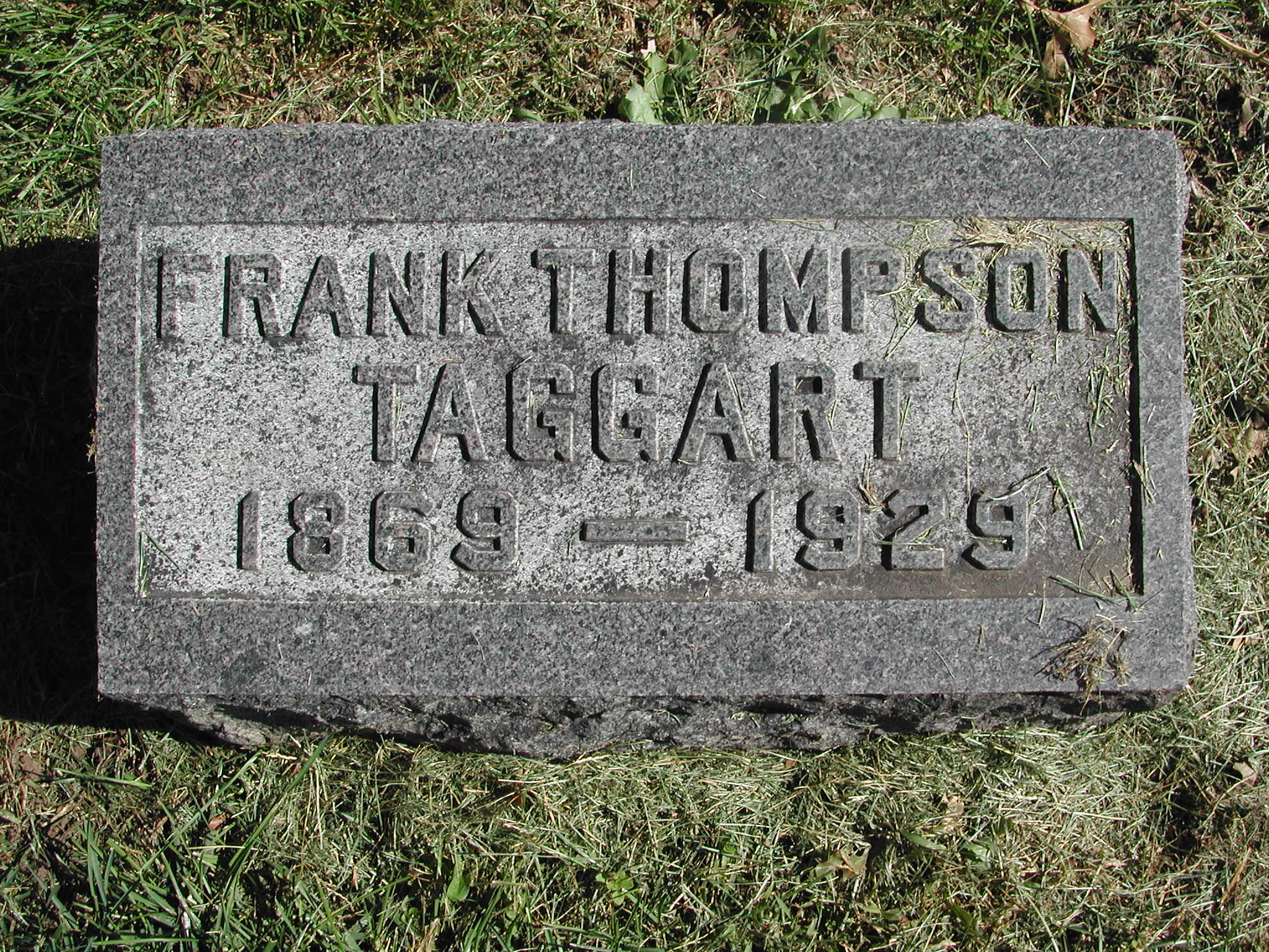 Taggart, Frank Thompson; b. 1869; d. 1929; Footstone; - Veteran status N/A; Section 3; Row 03; Photo