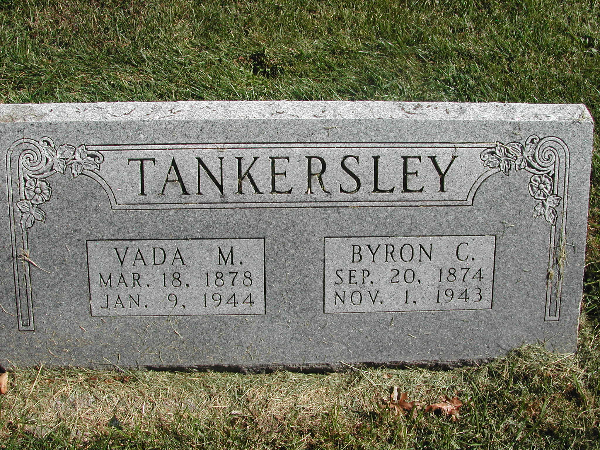 Tankersley, Byron C; b. 20 Sep 1874; d. 01 Nov 1943; s/w Vada M Tankersley; - Veteran status N/A; Section 3; Row 03; Photo