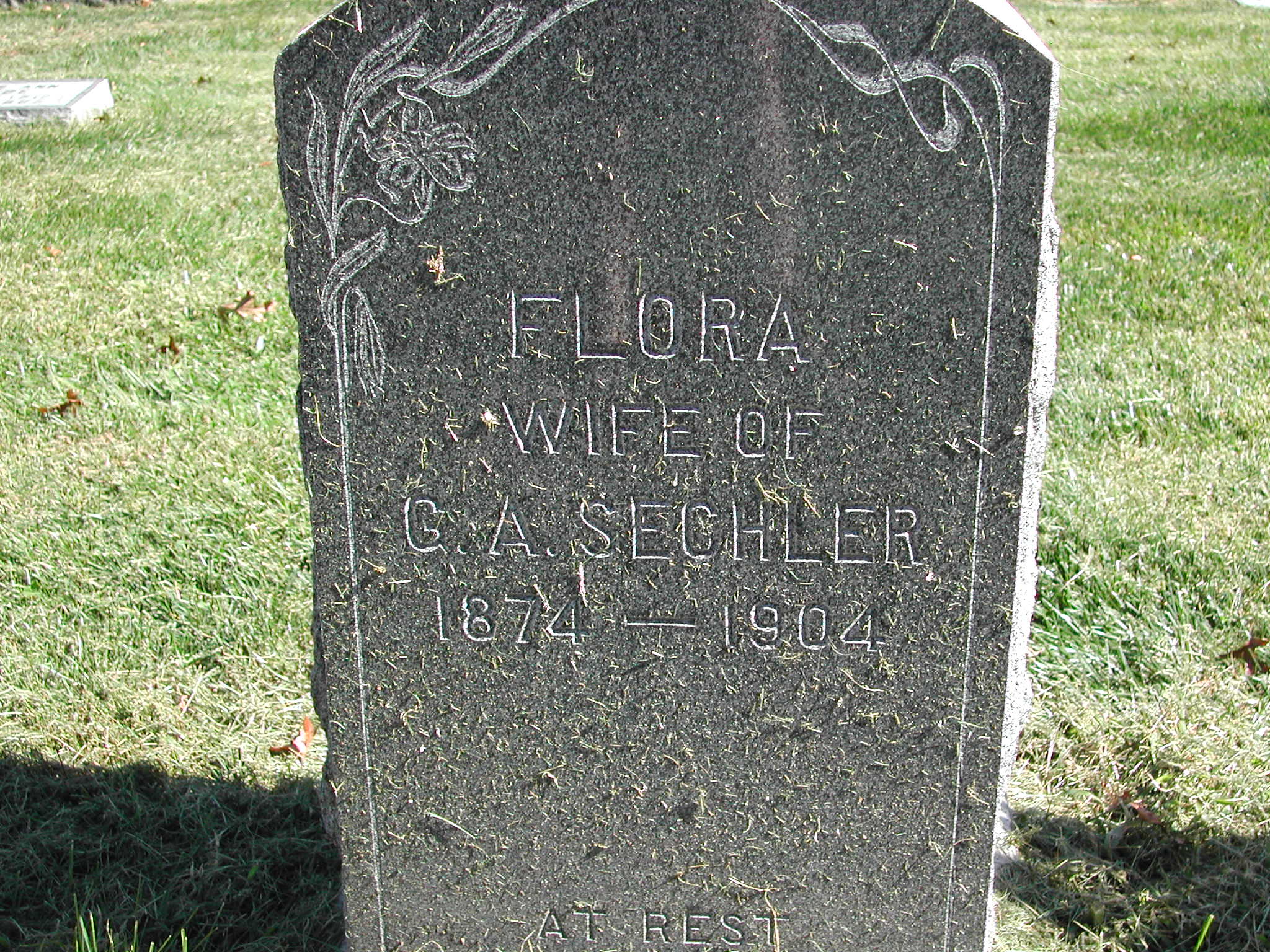 Sechler, Flora; b. 1874; d. 1904; Wife of G A Sechler; - Veteran status N/A; Section 3; Row 04; Photo
