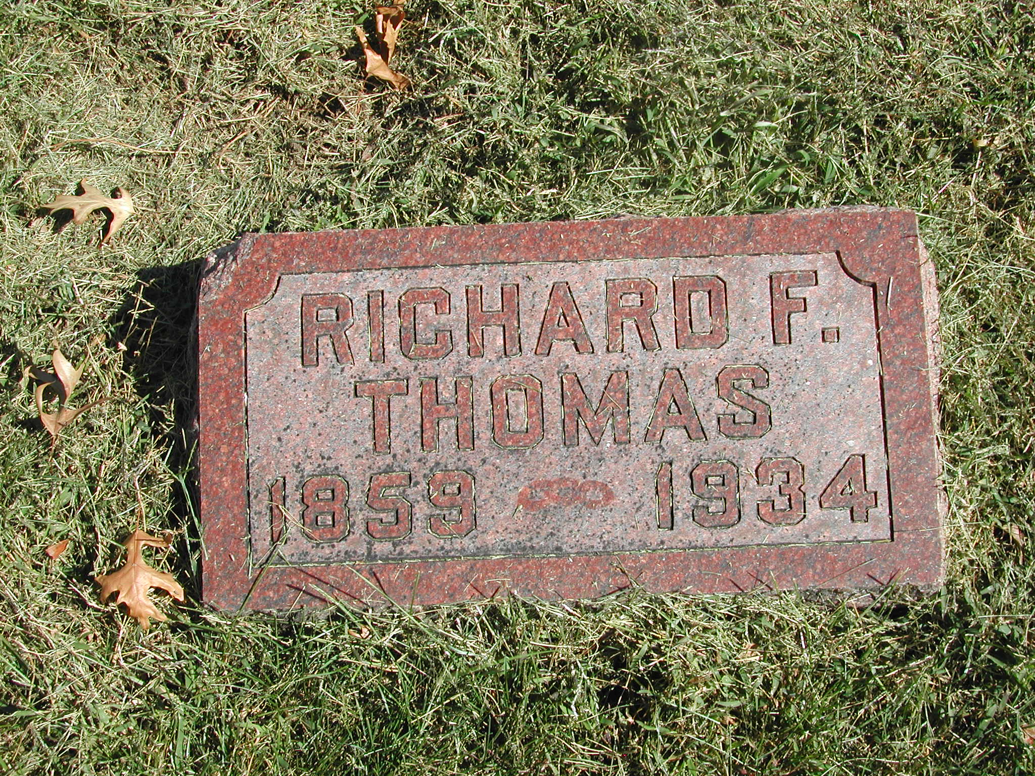 Thomas, Richard F; b. 1859; d. 1934; Footstone; - Veteran status N/A; Section 3; Row 04; Photo