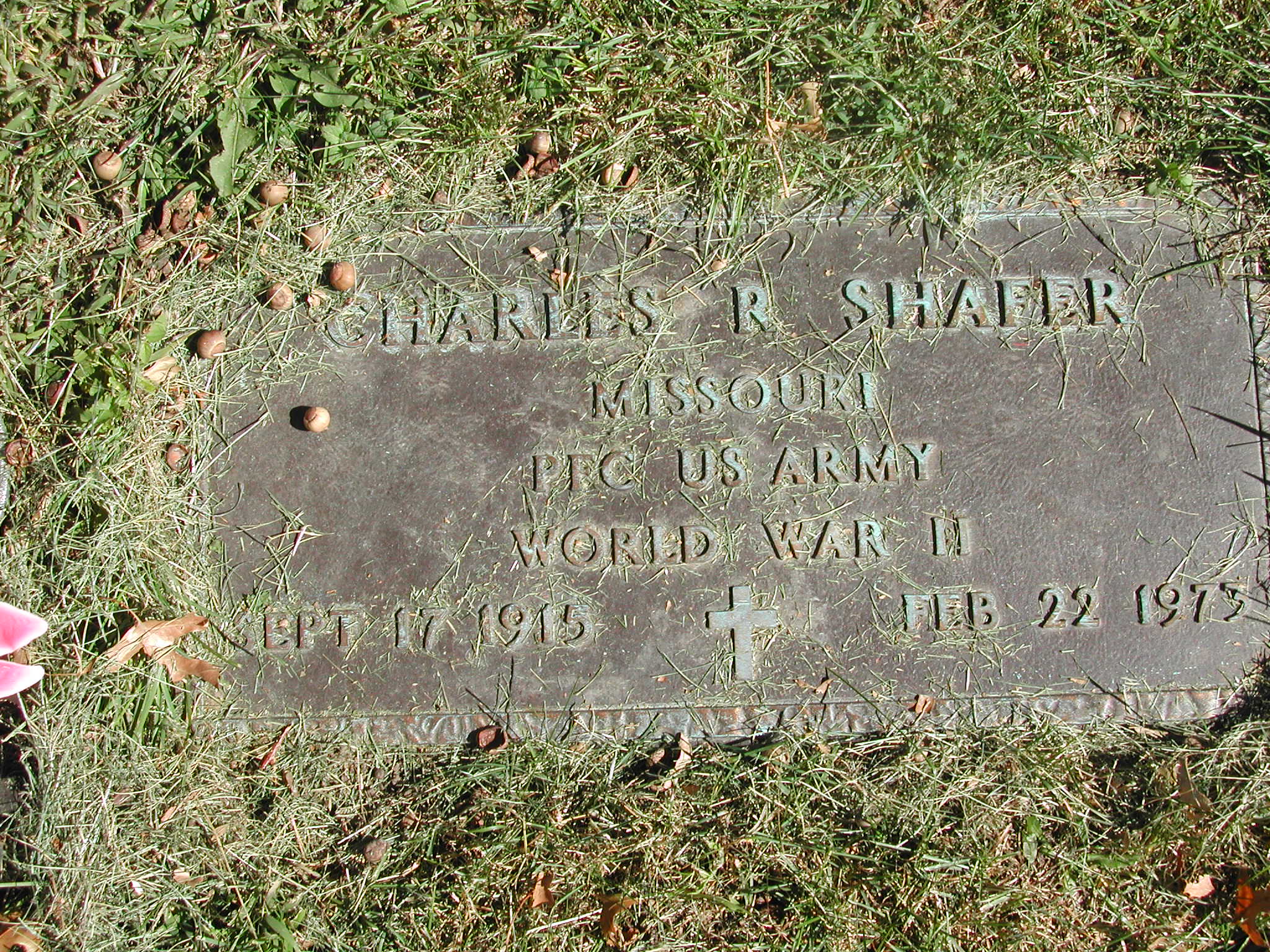 + Shafer, Charles R; b. 17 Sep 1915; d. 22 Feb 1973; Missouri PFC US ARMY WW II; + Veteran; Section 3; Row 06; Photo