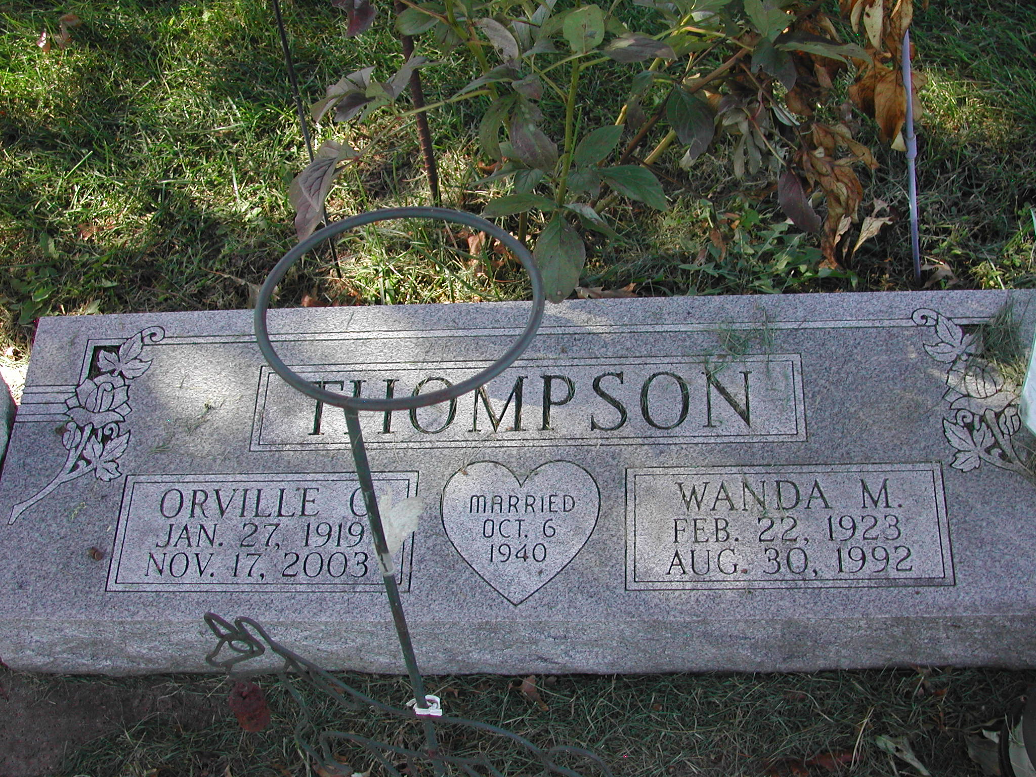 Thompson, Orville C; b. 27 Jan 1919; d. 17 Nov 2003; m. 06 Oct 1940; s/w Wanda M Thompson; - Veteran status N/A; Section 3; Row 07; Photo