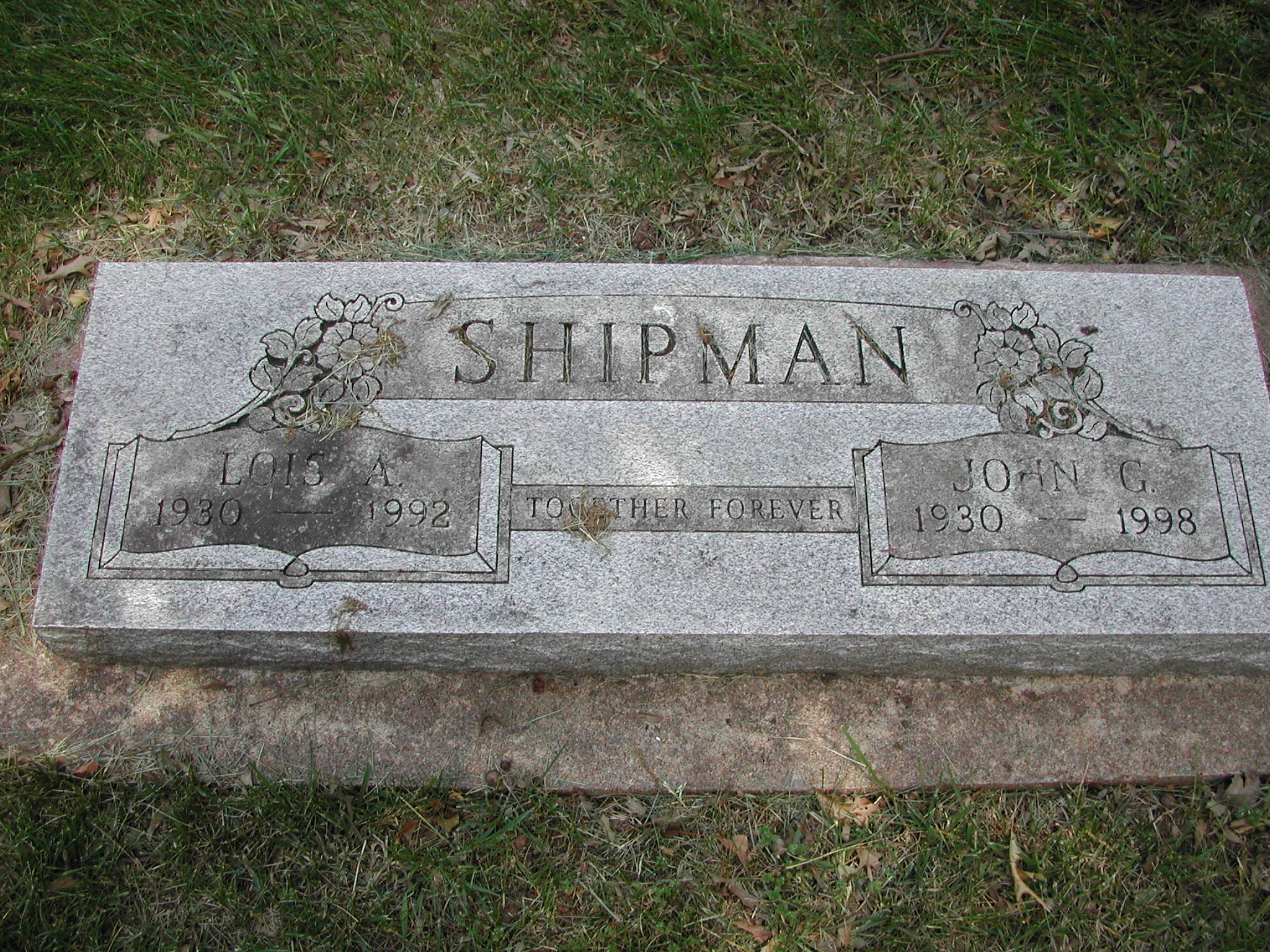 Shipman, John G; b. 1930; d. 1998; s/w Lois A Shipman; - Veteran status N/A; Section 4; Row 01; Photo