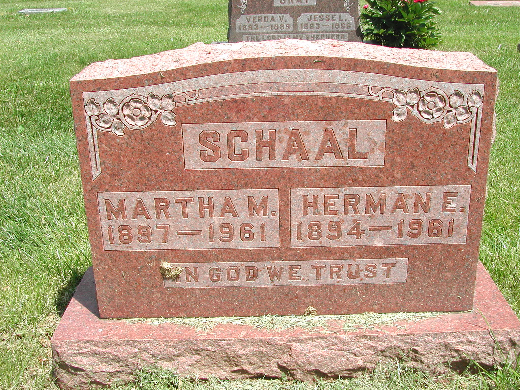 Schaal, Herman E; b. 1894; d. 1961; s/w Martha M Schaal; - Veteran status N/A; Section 4; Row 03; Photo