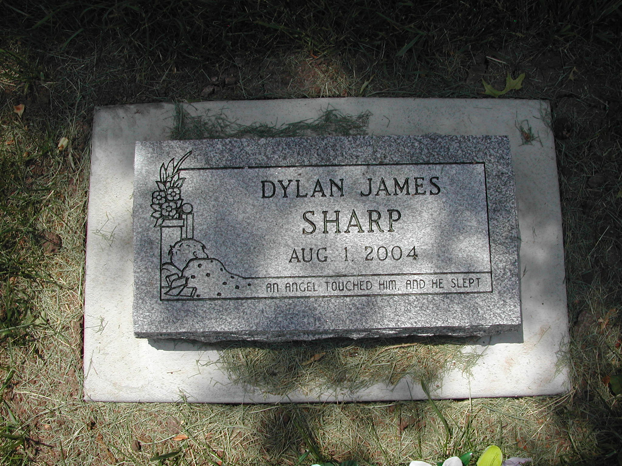Sharp, Dylan James; d. 01 Aug 2004; Footstone Sharp; - Veteran status N/A; Section 4; Row 03; Photo