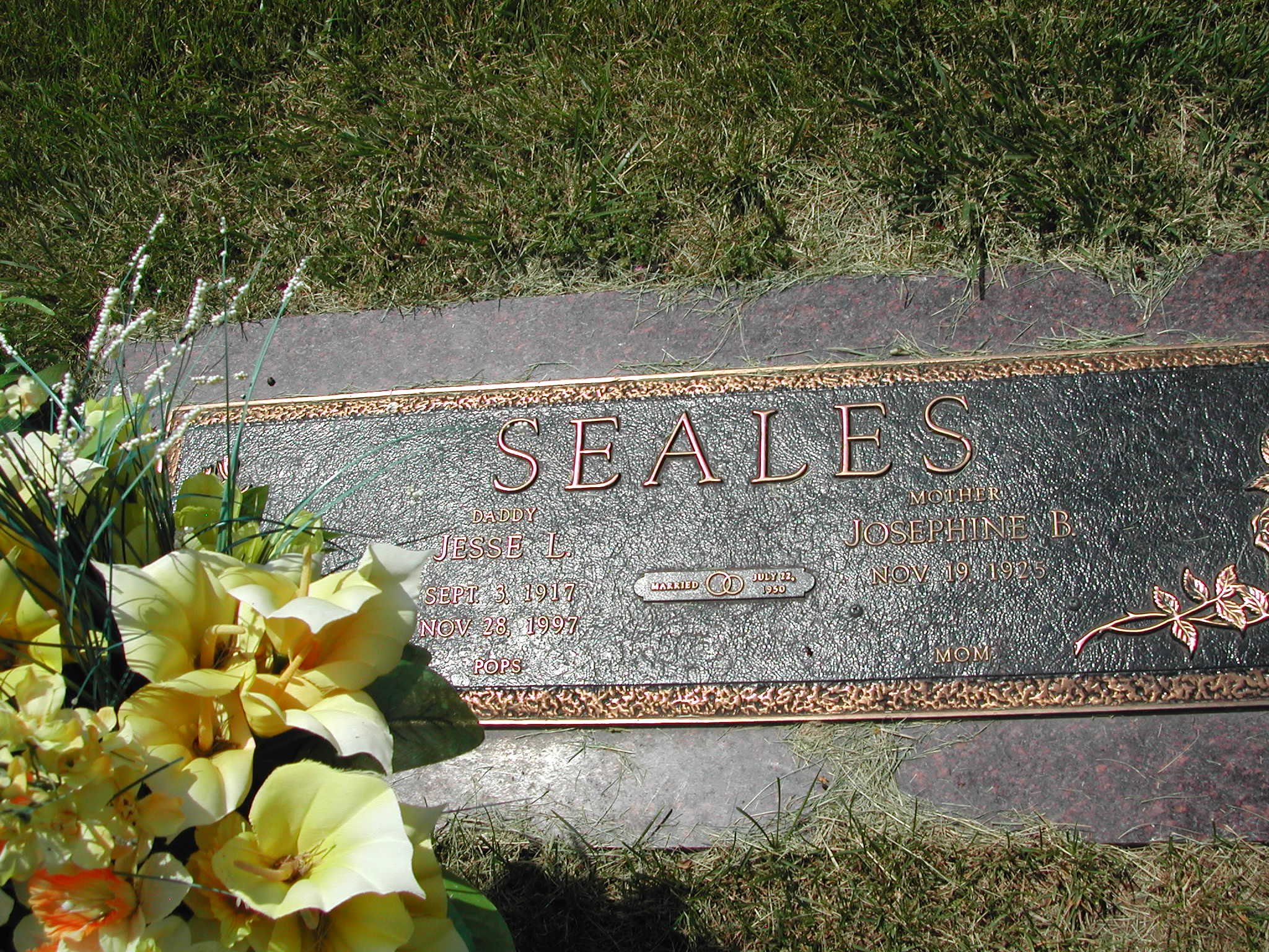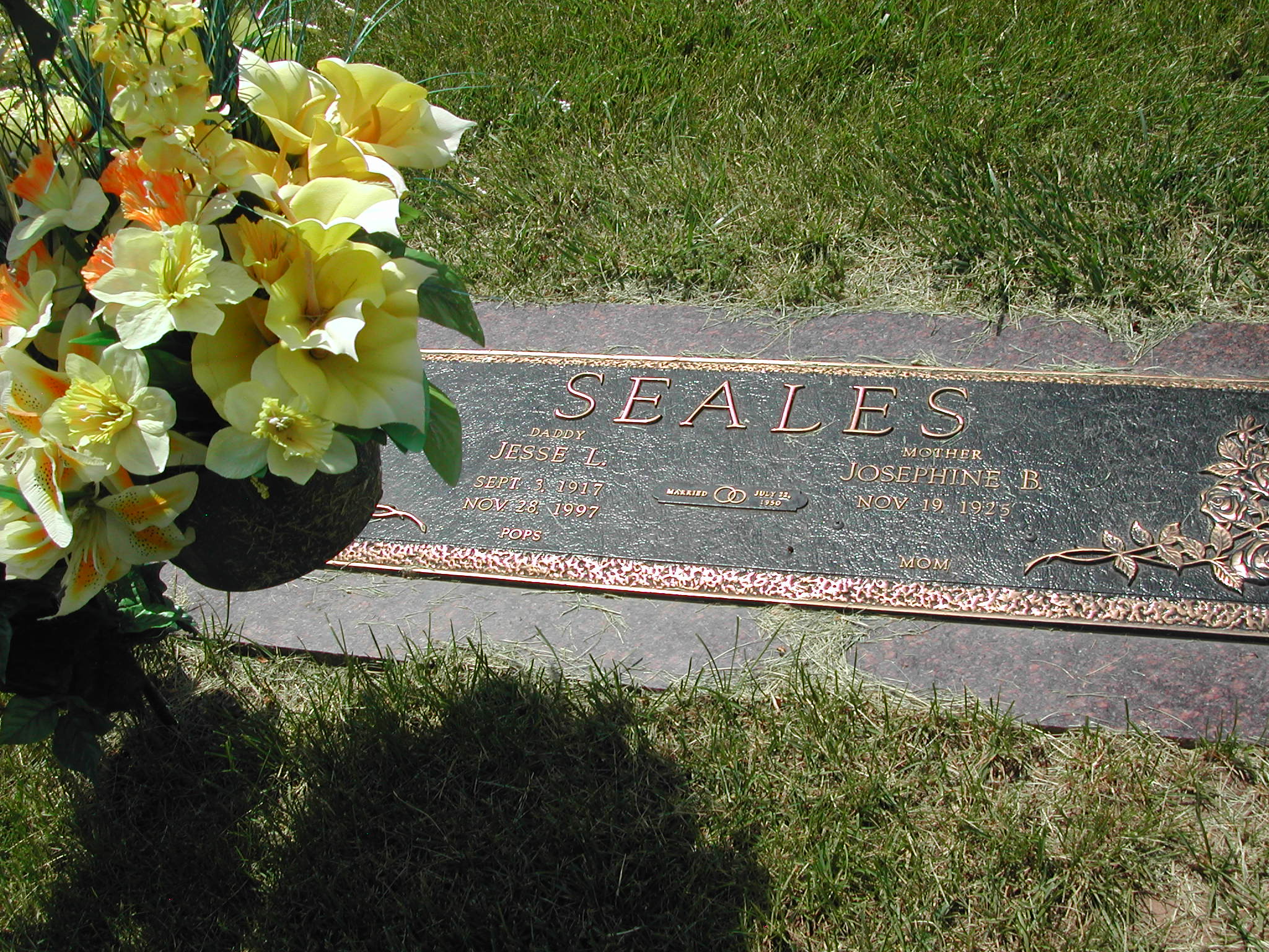 Seales, Jesse L; b. 03 Sep 1917; d. 28 Nov 1997; m. 12 Jul 1950; Daddy POPS Seales; s/w Josephine B Seales; - Veteran status N/A; Section 4; Row 03; Photo Photo