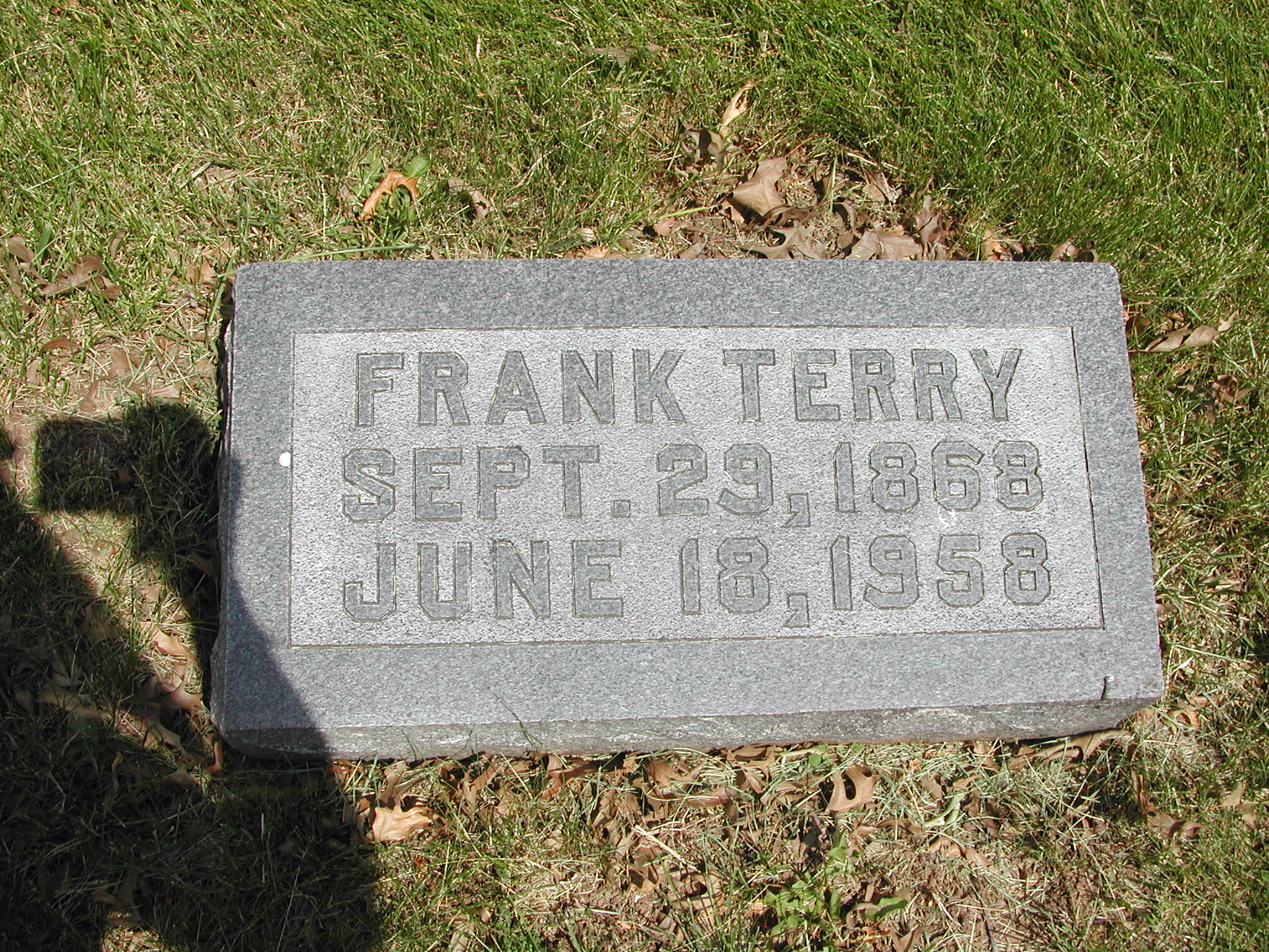 Terry, Frank; b. 29 Sep 1868; d. 18 Jun 1958; Footstone Terry; - Veteran status N/A; Section 4; Row 04; Photo