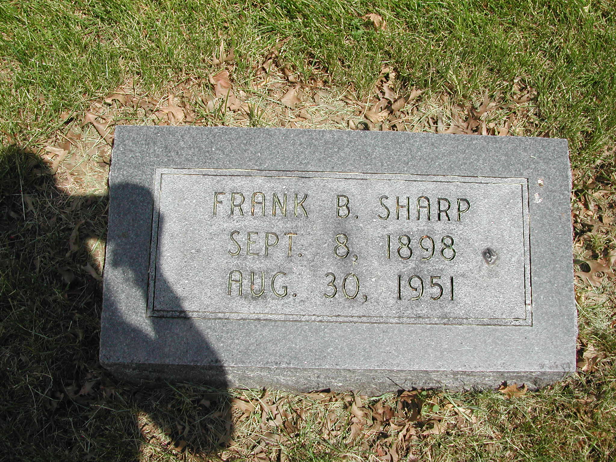 Sharp, Frank B; b. 08 Sep 1898; d. 30 Aug 1951; Footstone Sharp; - Veteran status N/A; Section 4; Row 04; Photo