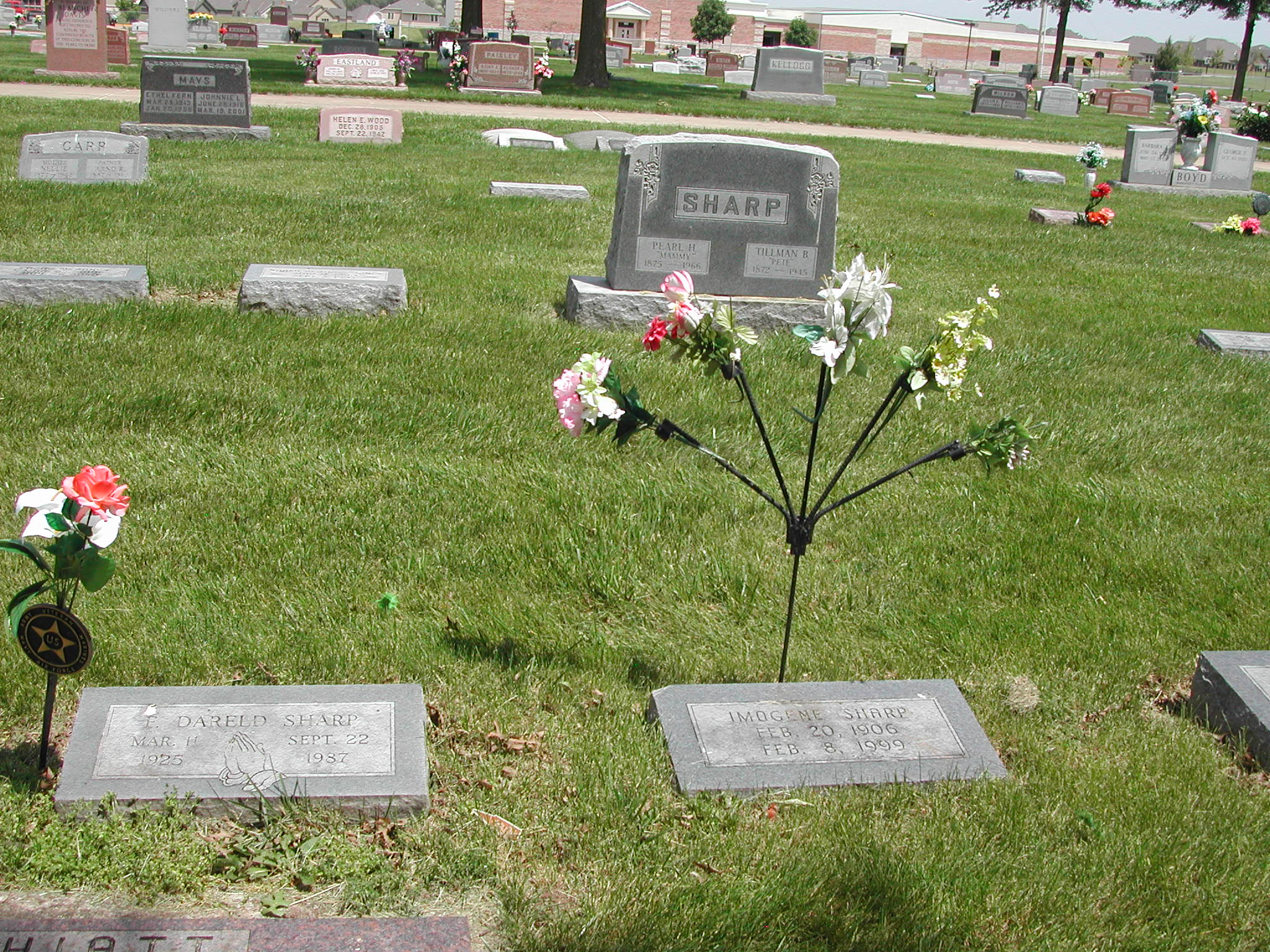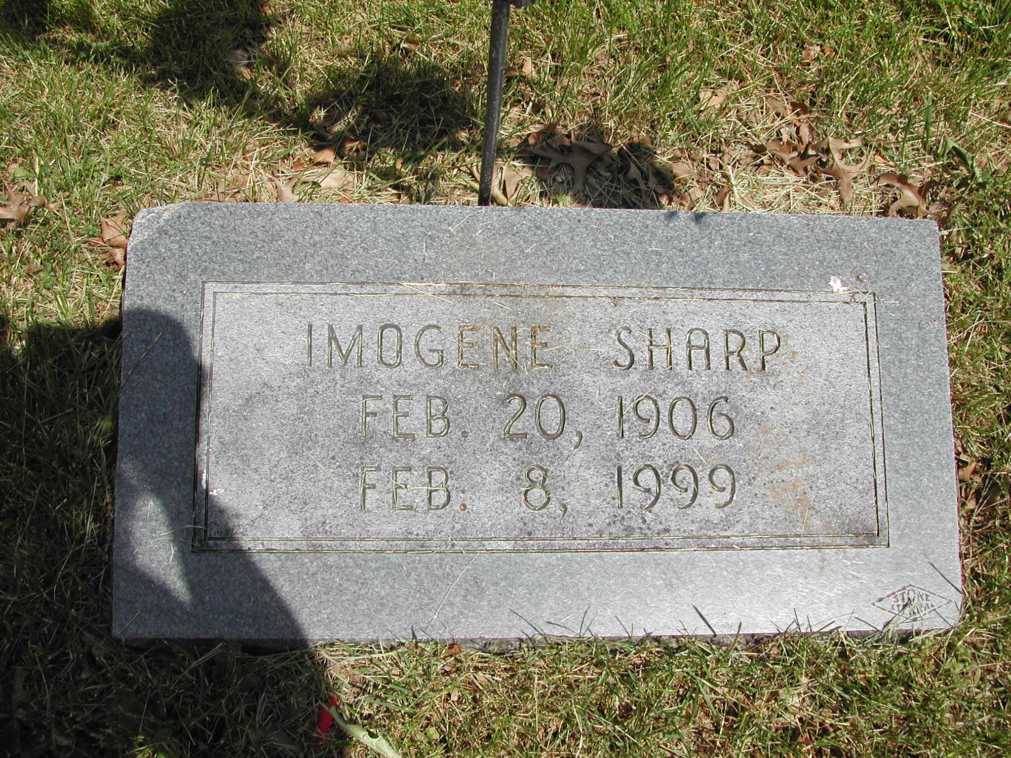 Sharp, Imogene; b. 20 Feb 1906; d. 08 Feb 1999; Footstone Sharp; - Veteran status N/A; Section 4; Row 04; Photo Photo