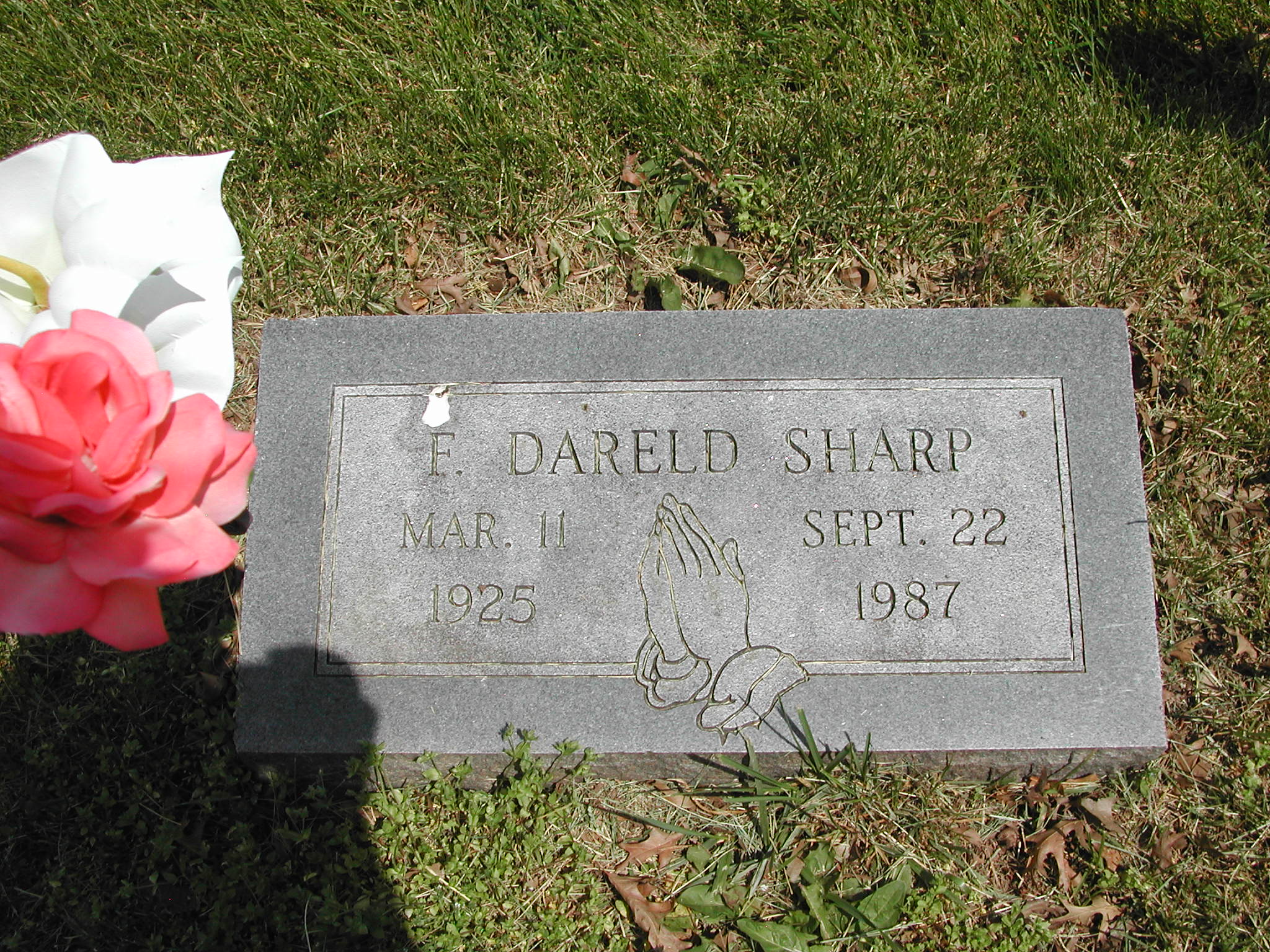 + Sharp, F Dareld; b. 11 Mar 1925; d. 22 Sep 1987; Footstone Sharp; + Veteran; Section 4; Row 04; Photo Photo