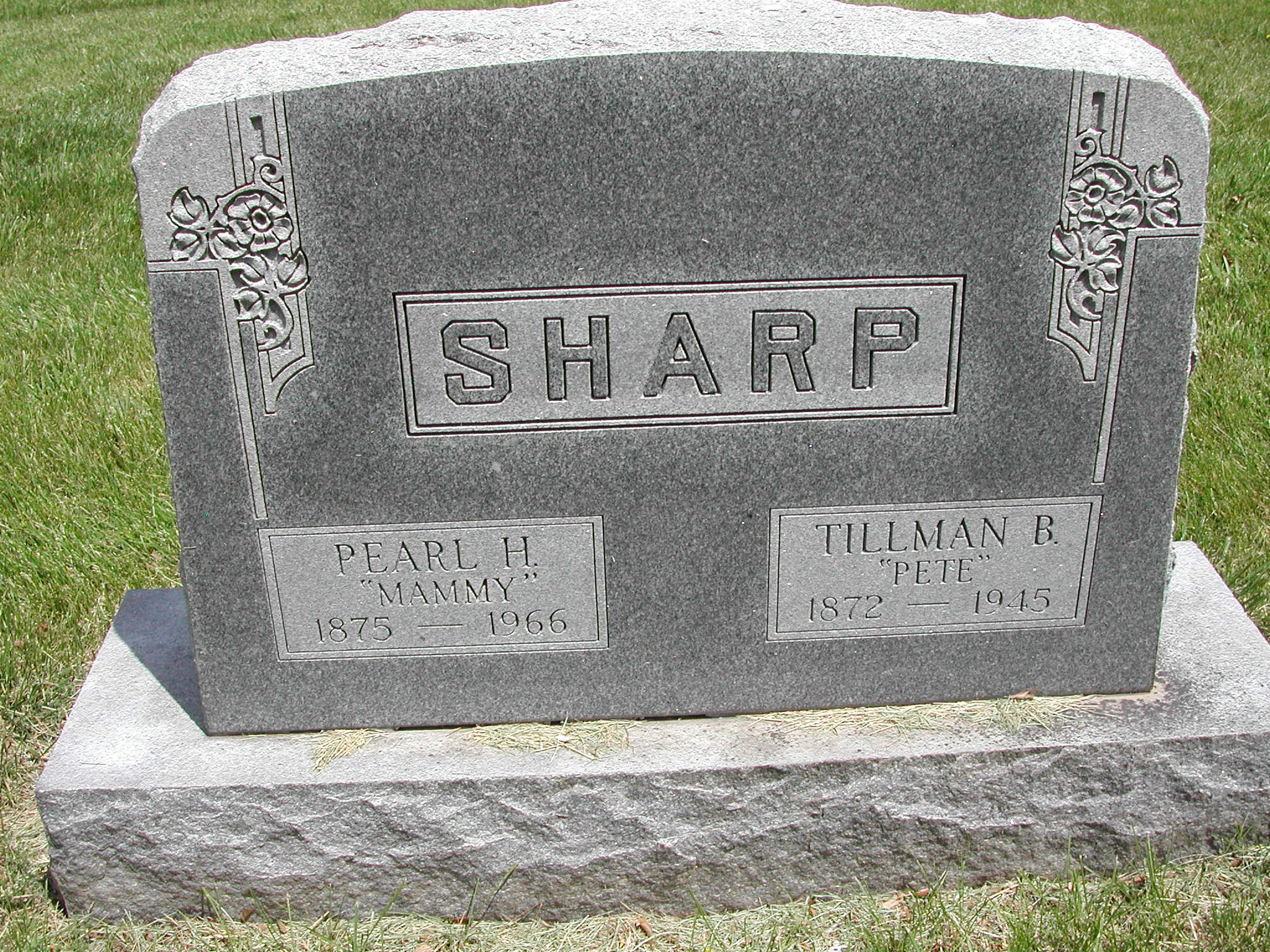 Sharp, Tillman B; b. 1872; d. 1945; Pete Sharp; s/w Pearl H Sharp; - Veteran status N/A; Section 4; Row 05; Photo