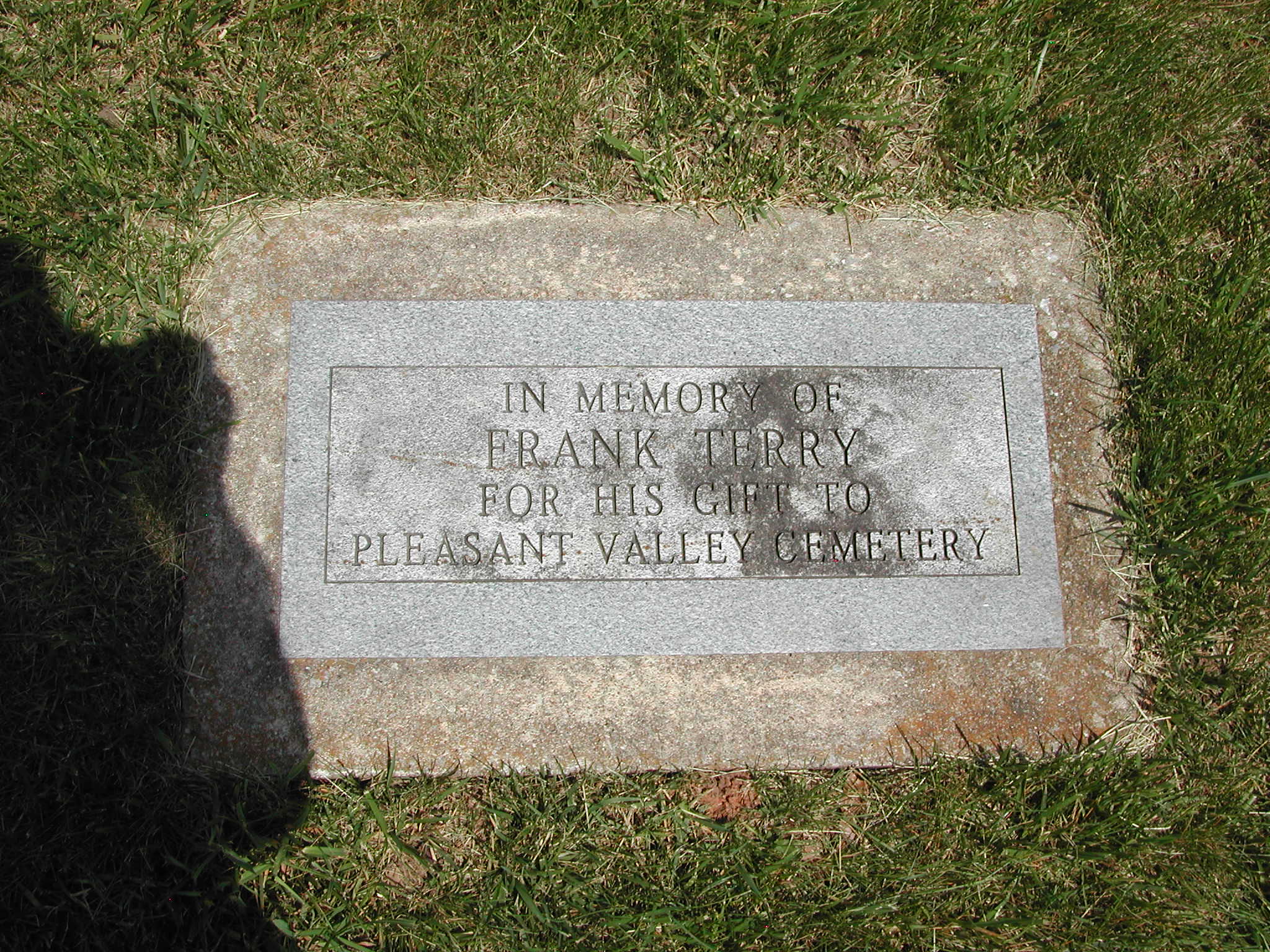 Terry, Frank; Footstone Terry, In Memory of Frank Terry for his gift to Pleasant Valley Cemetery; - Veteran status N/A; Section 4; Row 05; Photo