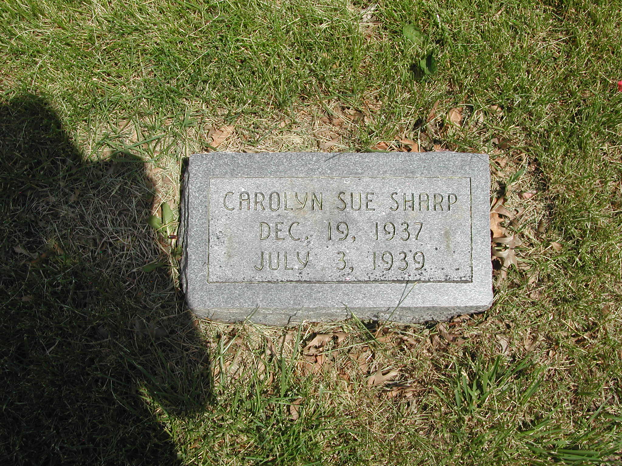 Sharp, Carolyn Sue; b. 19 Dec 1937; d. 03 Jul 1939; Footstone Sharp; - Veteran status N/A; Section 4; Row 05; Photo