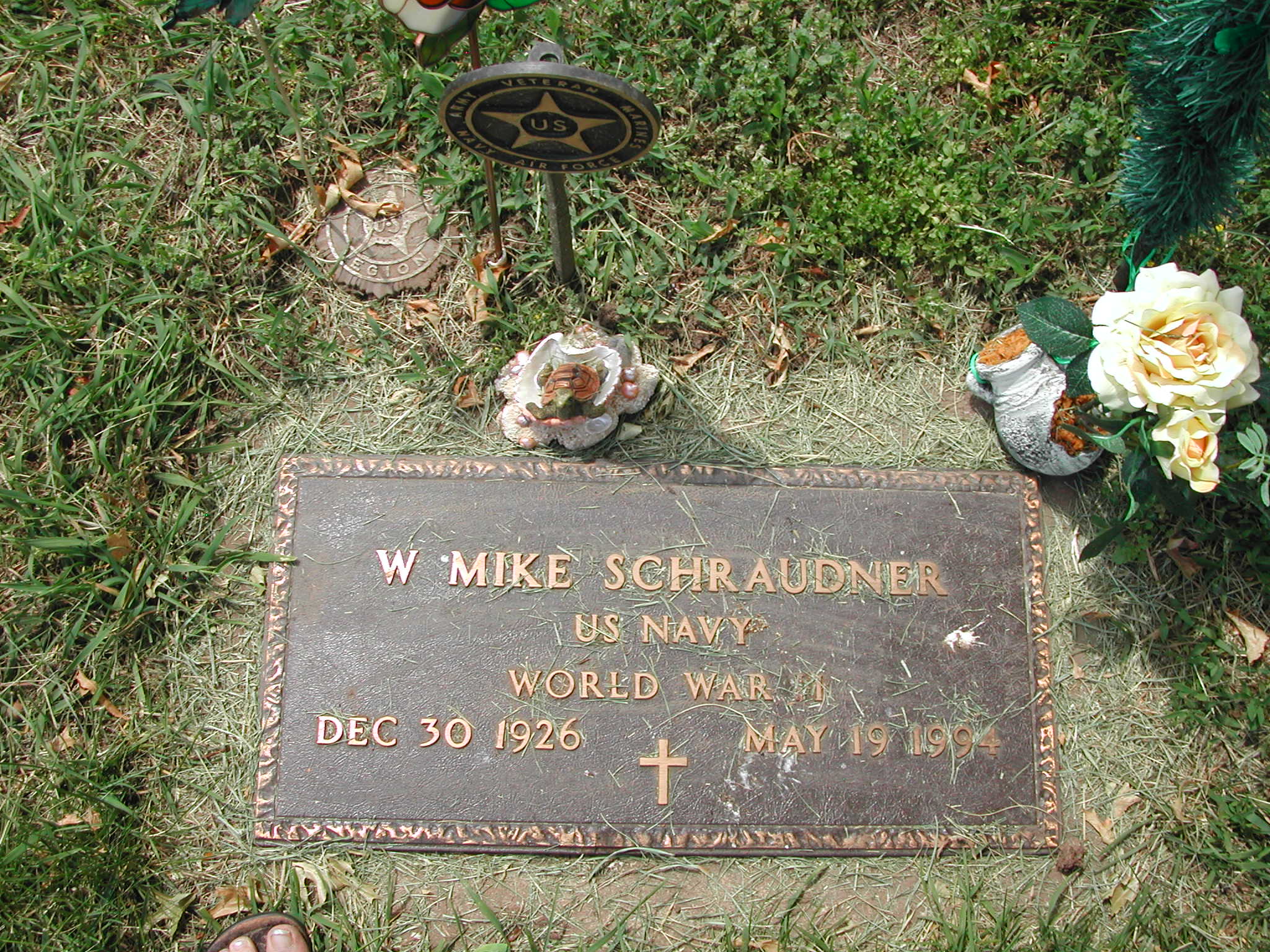 + Schraudner, W Mike; b. 30 Dec 1926; d. 19 May 1994; Footstone Schraudner; US NAVY WW II; + Veteran; Section 4; Row 06; Photo