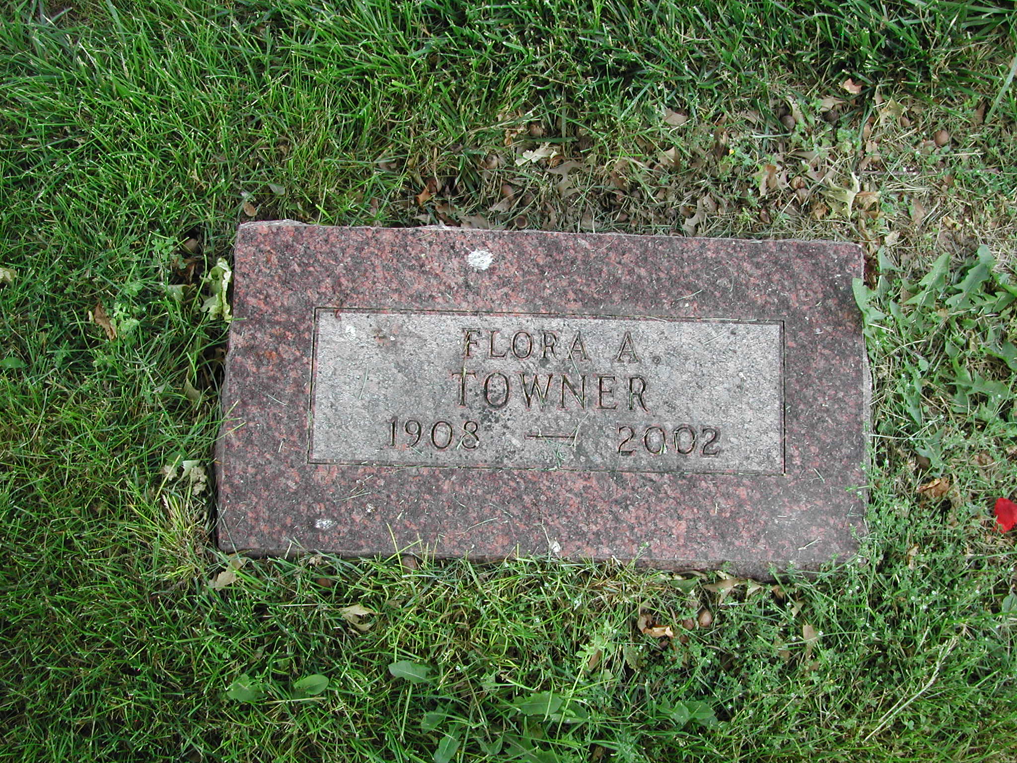 Towner, Flora A; b. 1903; d. 2002; Footstone Towner; - Veteran status N/A; Section 4; Row 06; Photo