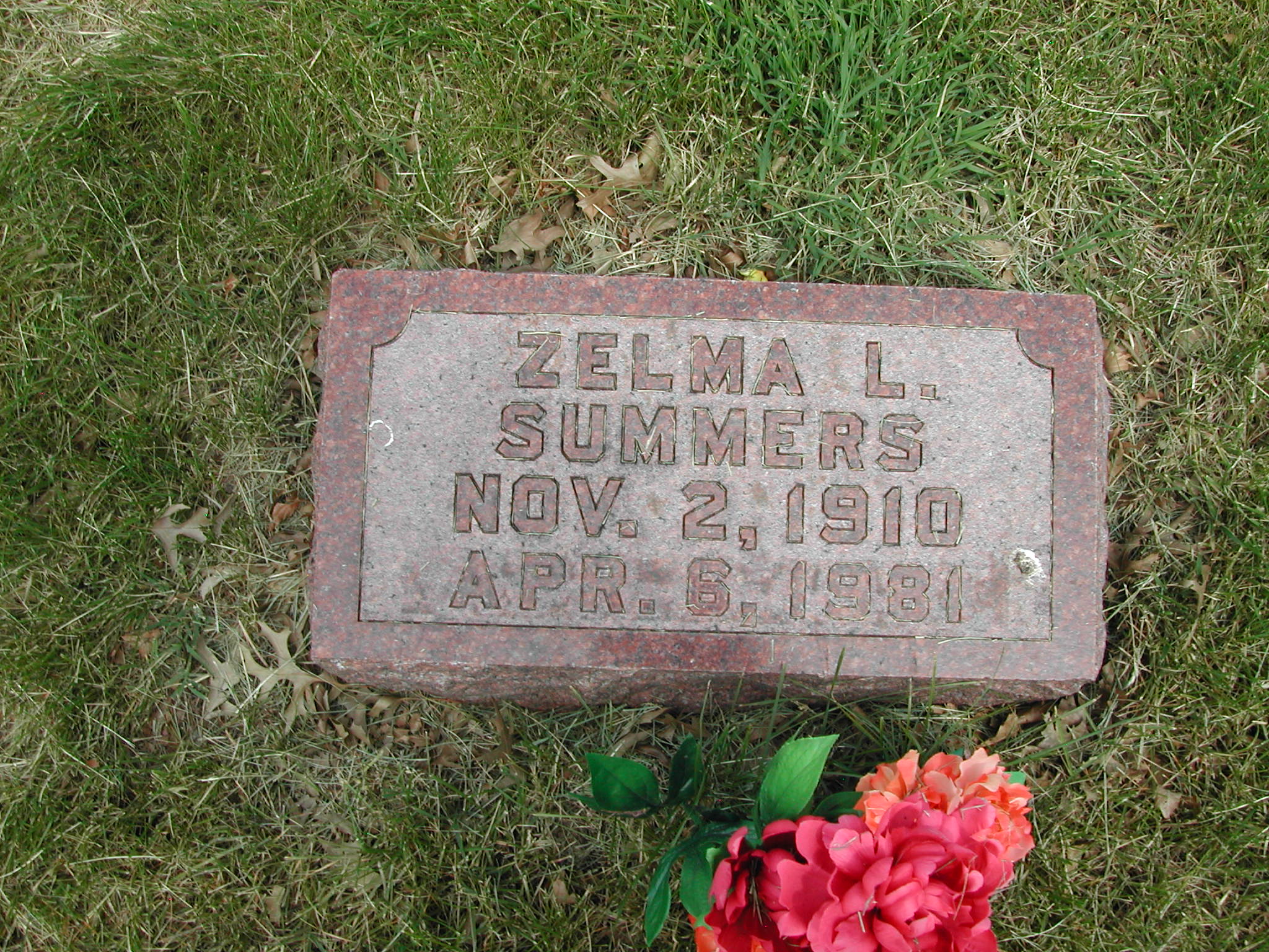 Summers, Zelma L; b. 02 Nov 1910; d. 08 Apr 1981; Footstone Summers; - Veteran status N/A; Section 4; Row 06; Photo