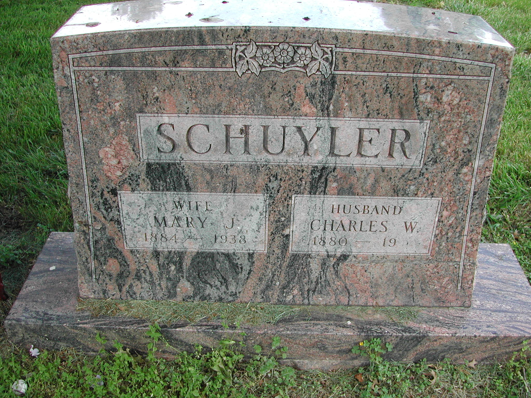 Schuyler, Charles W; b. 1880; Husband; s/w Mary Jane Schuyler; - Veteran status N/A; Section 4; Row 06; Photo