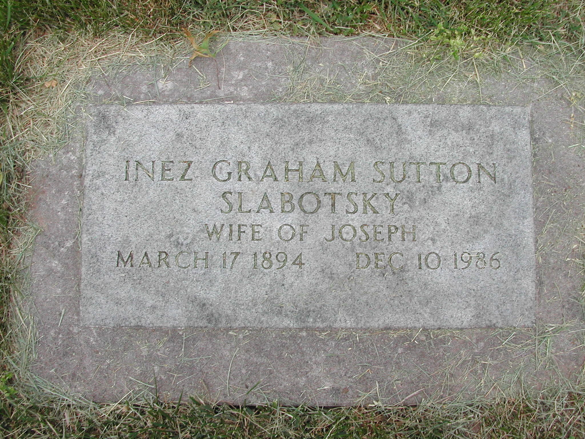 Shelton, Inez Agnes; b. 15 Aug 1891; d. 06 Oct 1971; s/w Arthur W Shelton; - Veteran status N/A; Section 2; Row 05; Photo